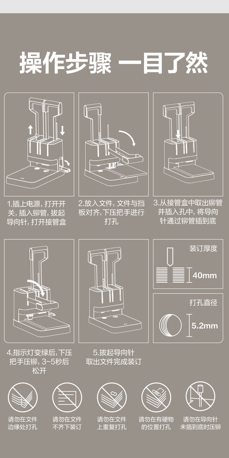 Efficient Financial Voucher Binding Machine, Labor-Saving Small Electric Accounting Binder, Ledger Office Document File Hot Melt Rivet Tube Puncher, Manual Household Fully Automatic Hole Puncher