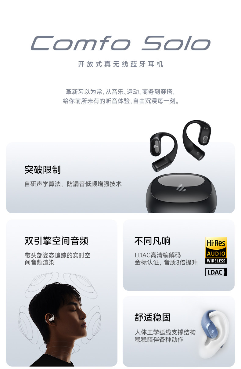 Edifier Comfo Solo Wireless Bluetooth Headphones, Over-Ear Open-Type, Special for Sports, Cycling, Running, and Fitness