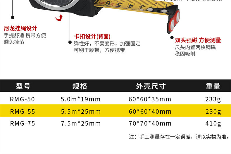 Imported Robin Hood Tape Measure, Metric and Imperial, Self-Locking, with Strong Magnetic Head, High-Precision Measuring Steel Tape Measure Rmg-50