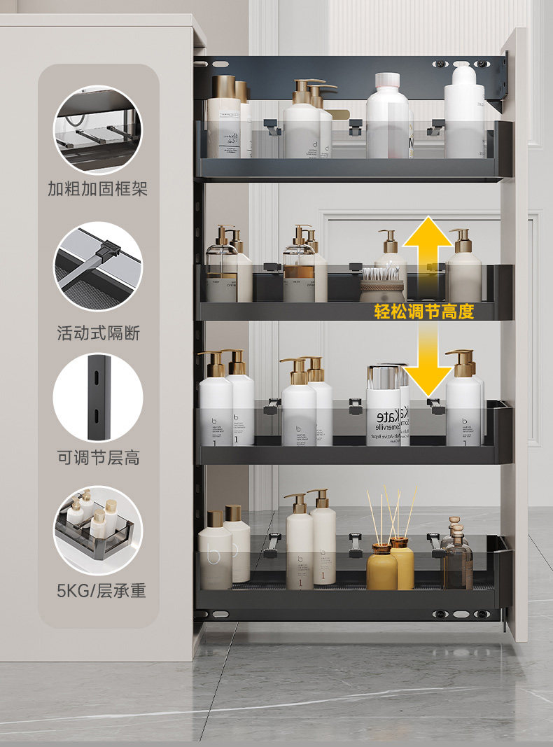Murini Bathroom Half-Wall Pull Basket Kitchen Cabinet Drawer-Type Extremely Narrow Cabinet Side Pull Basket Pull-Out Bathroom Cabinet Side Cabinet