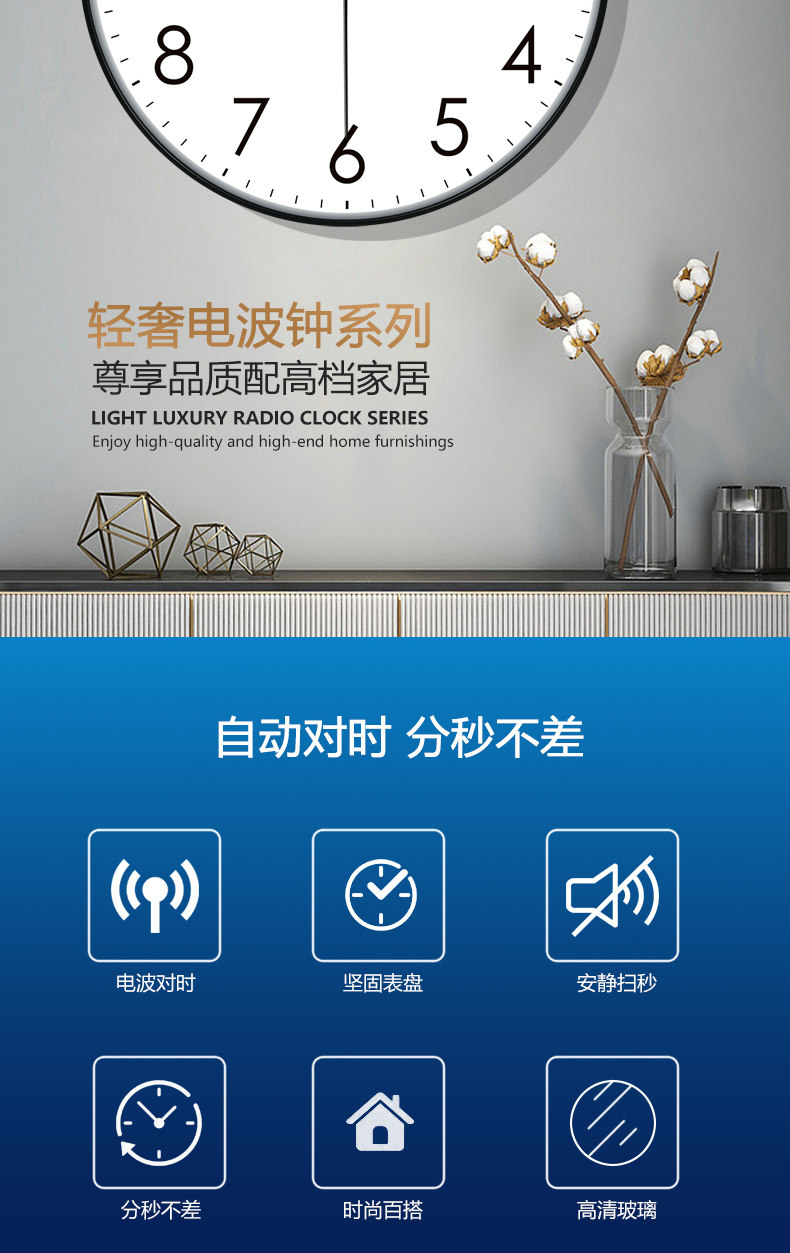Modern Minimalist Clock Radio-Controlled Wall Clock for Living Room Home Use Light Luxury Fashion Classroom Quartz Wall Clock Automatic Time Setting