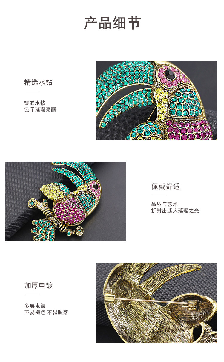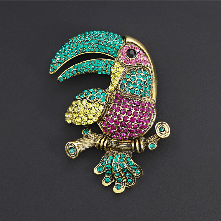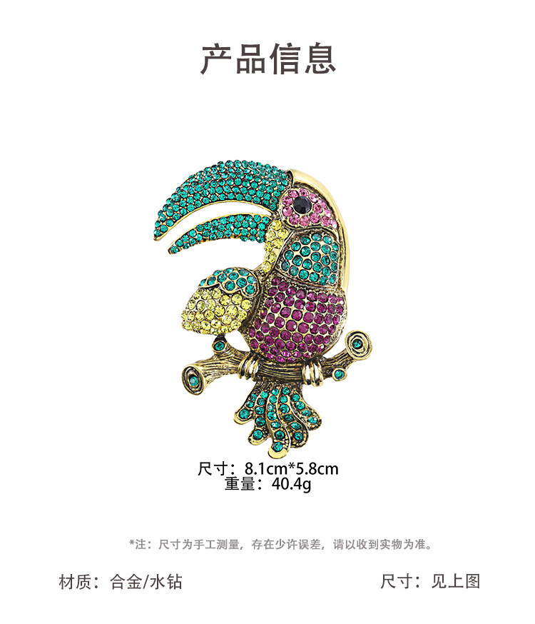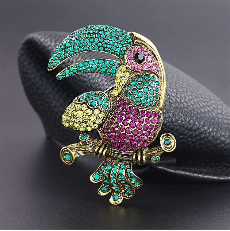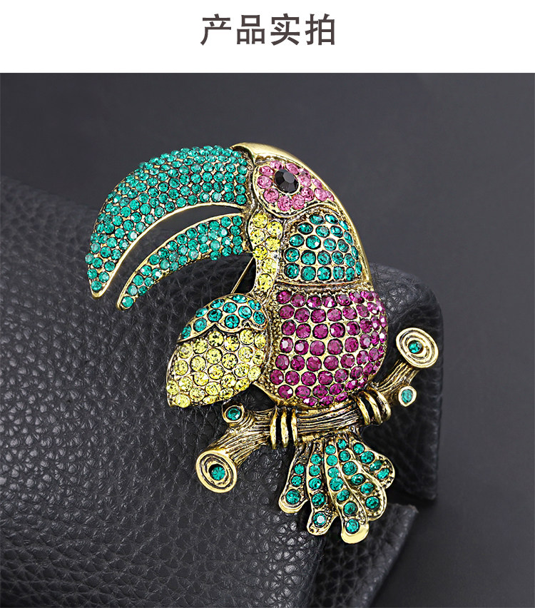 Exaggerated and Grandiose Animal Brooch with Full Rhinestone Alloy Design of a Toucan Parrot for Women, Suitable for Cross-Border Trade and Clothing Accessories