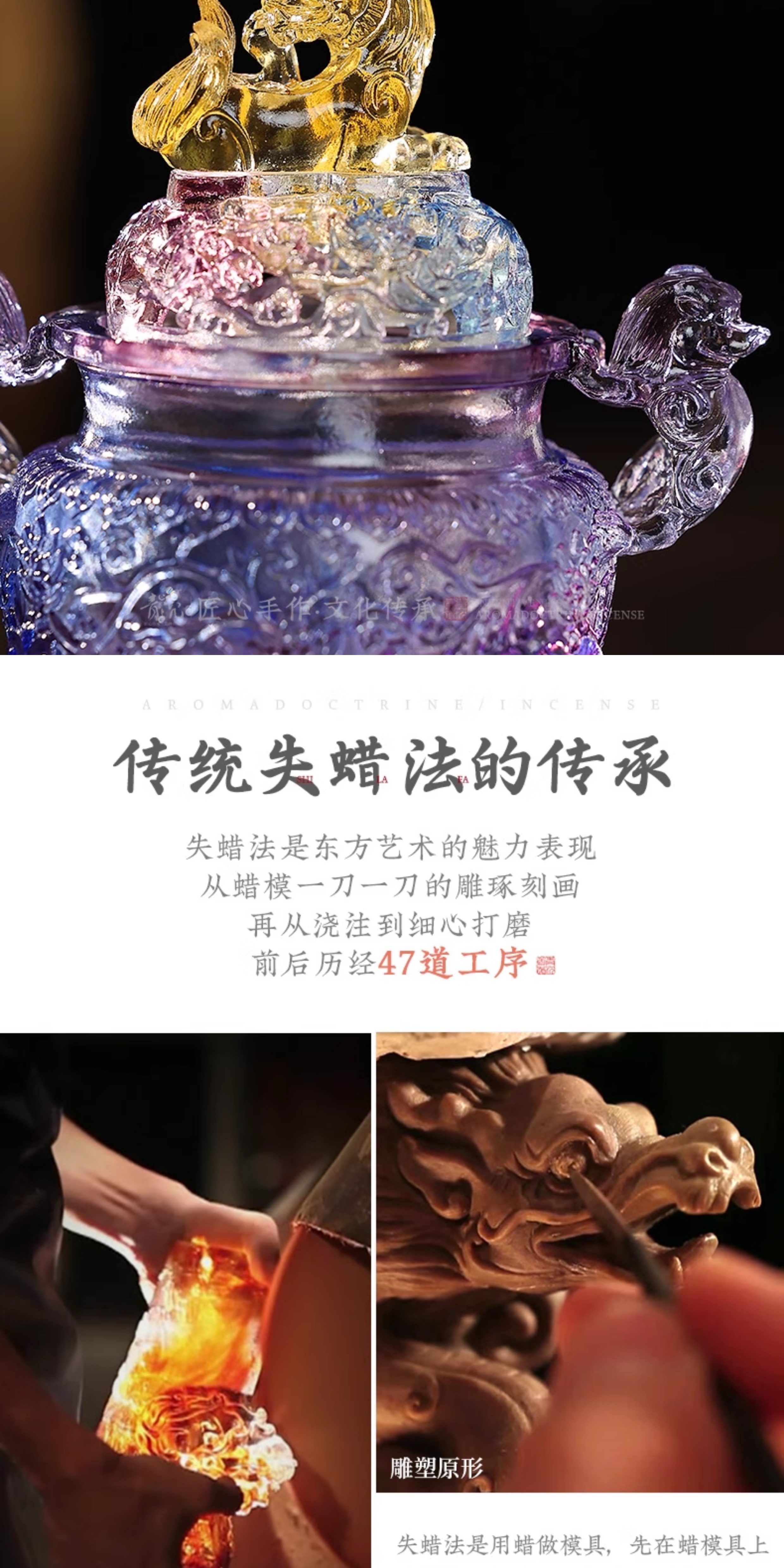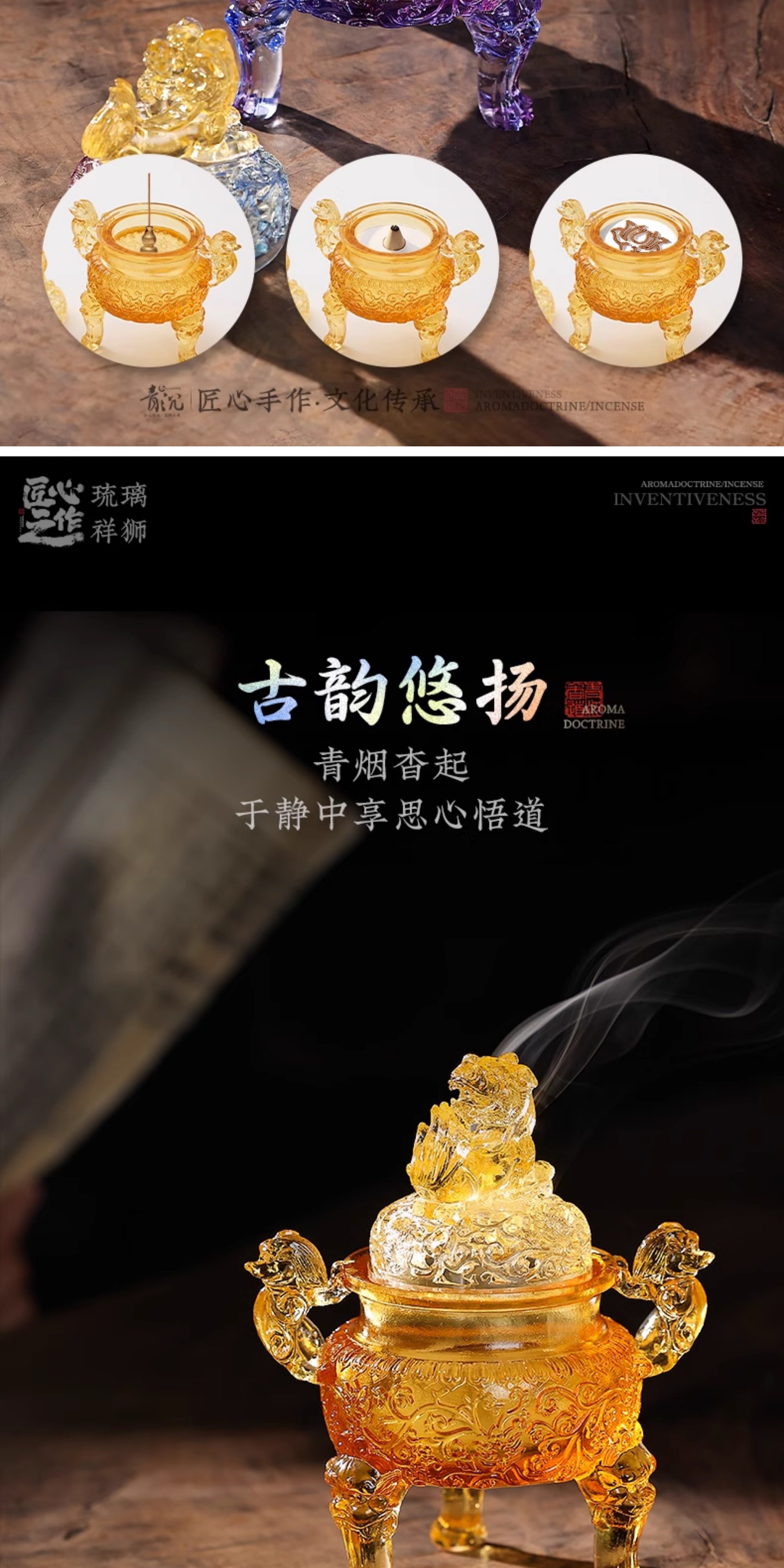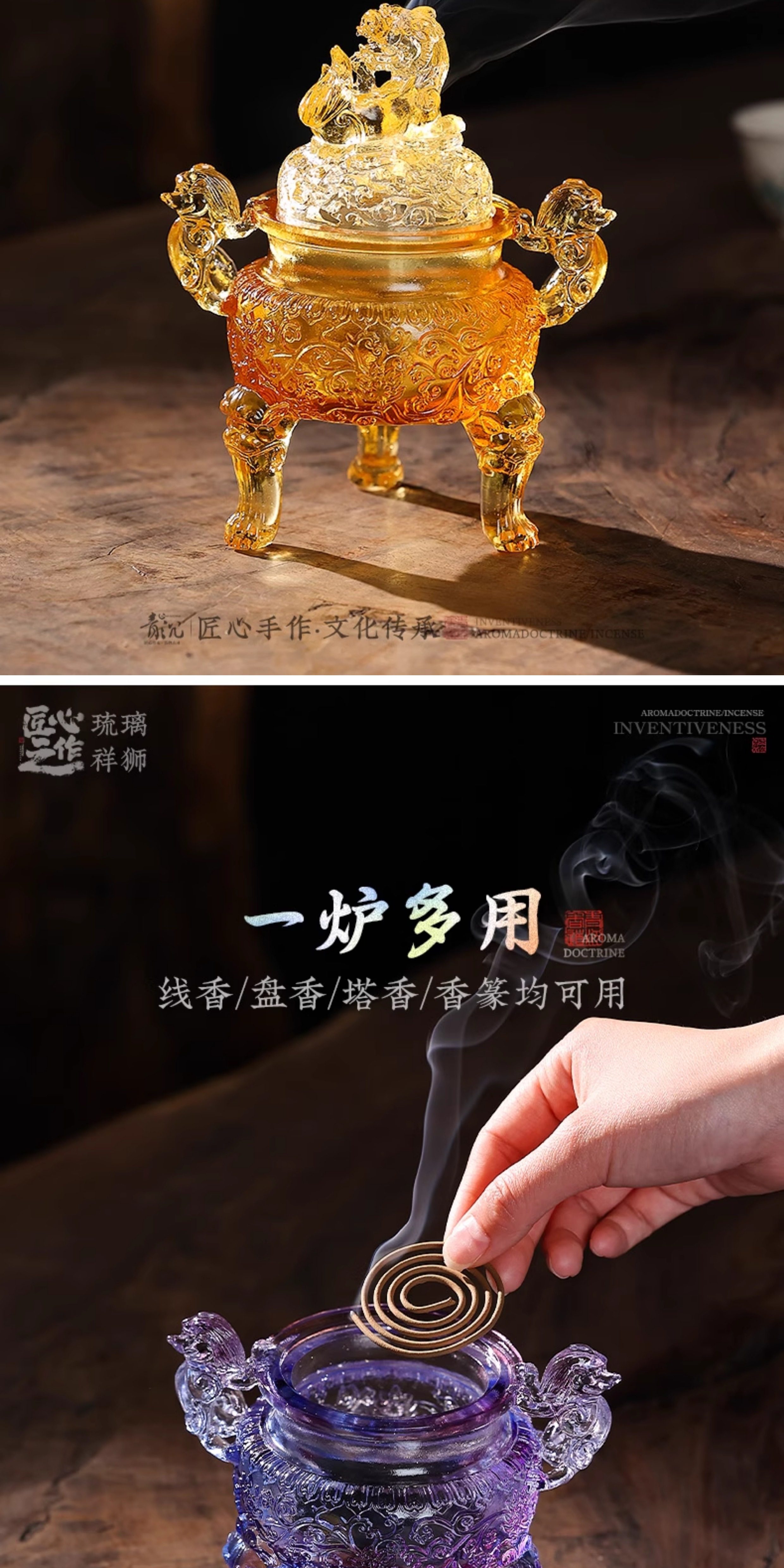 Large Classical Chinese Incense Burner with Lion Design, Made of Crystal and Glazed Ceramic, for Home Use, Indoor, Creative Ornament, Tea Ceremony