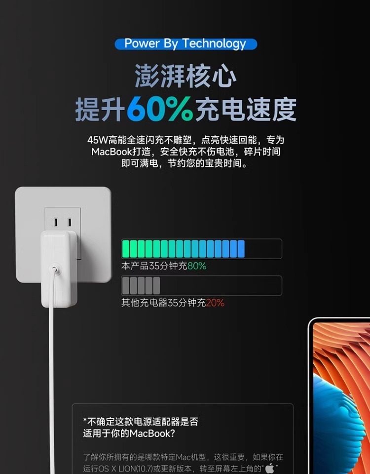 MacBook Air/Mac/Pro Laptop Power Adapter Suitable for Apple Computer Charger Original Plug Genuine Charging Cable Fast Charging Type-C45W60W85W Flagship Official Website