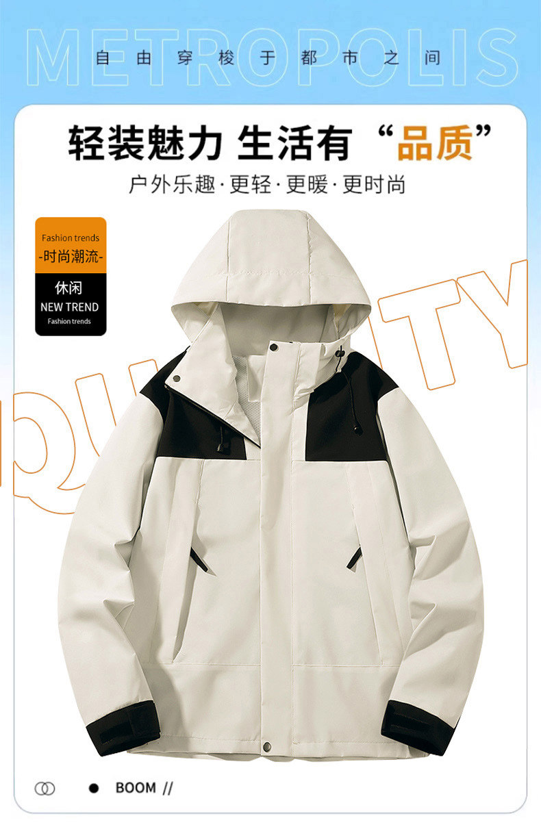 2024 New Color-Blocked Waterproof Outdoor Spring and Autumn Jacket for Men and Women, Couple Style, Trendy Brand, Single-Layer Mountaineering Clothing for Tibet
