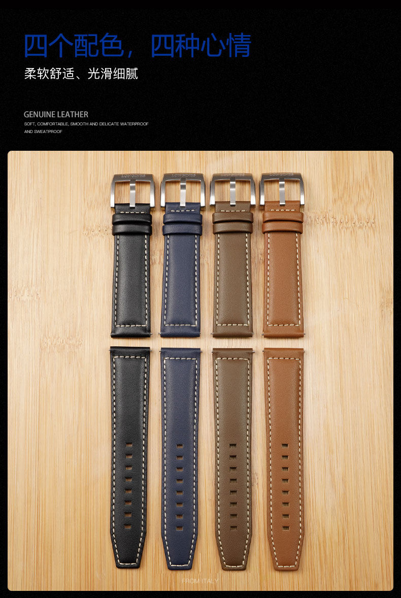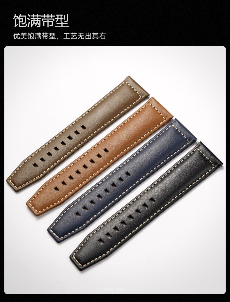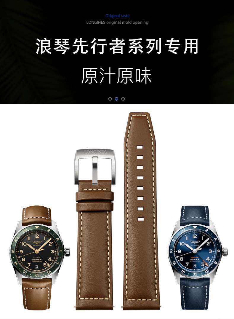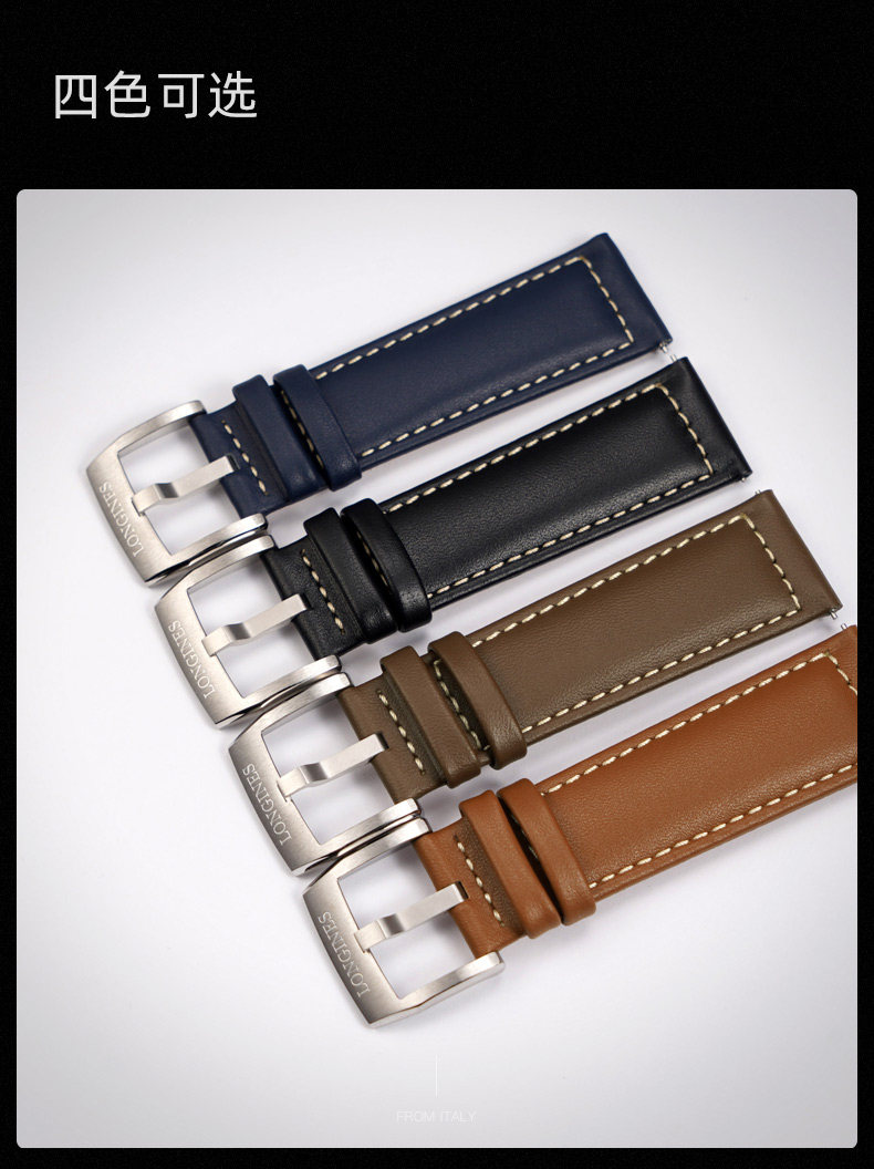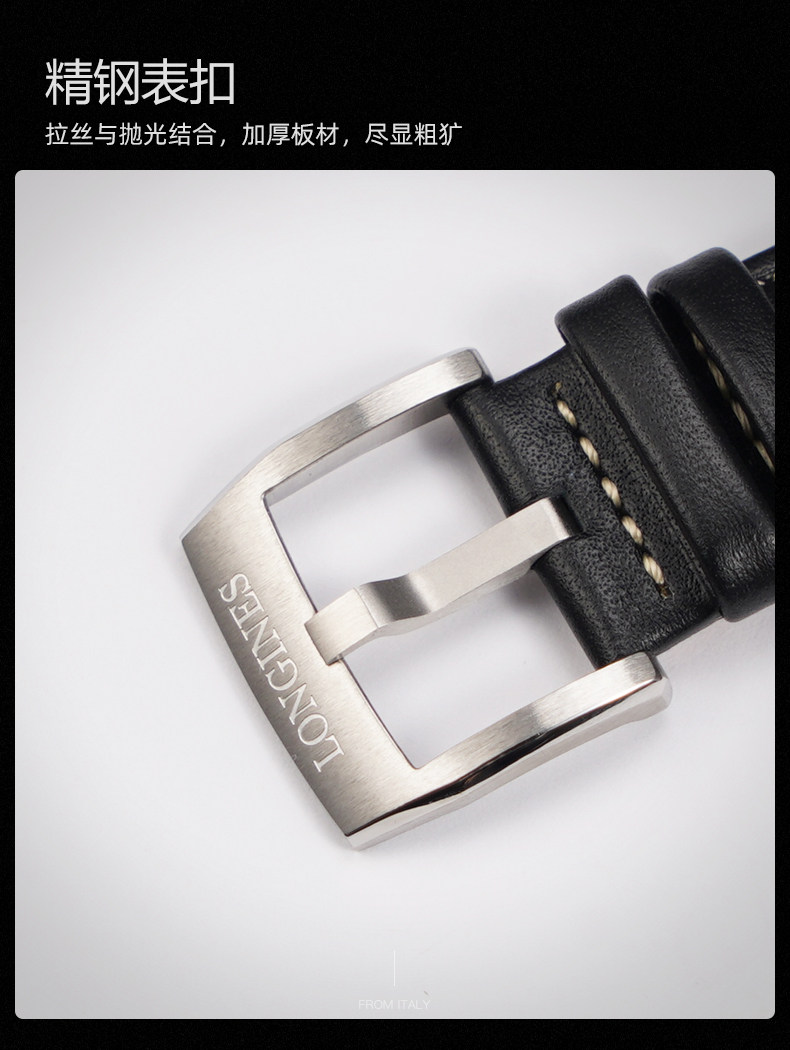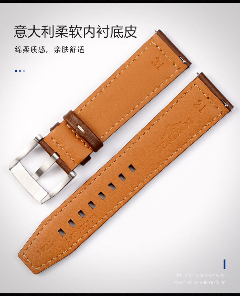 Suitable for Longines Pioneer Series Genuine Leather Watch Strap Original Five-Star Admiral Zulu Time Equestrian Watch Strap for Men
