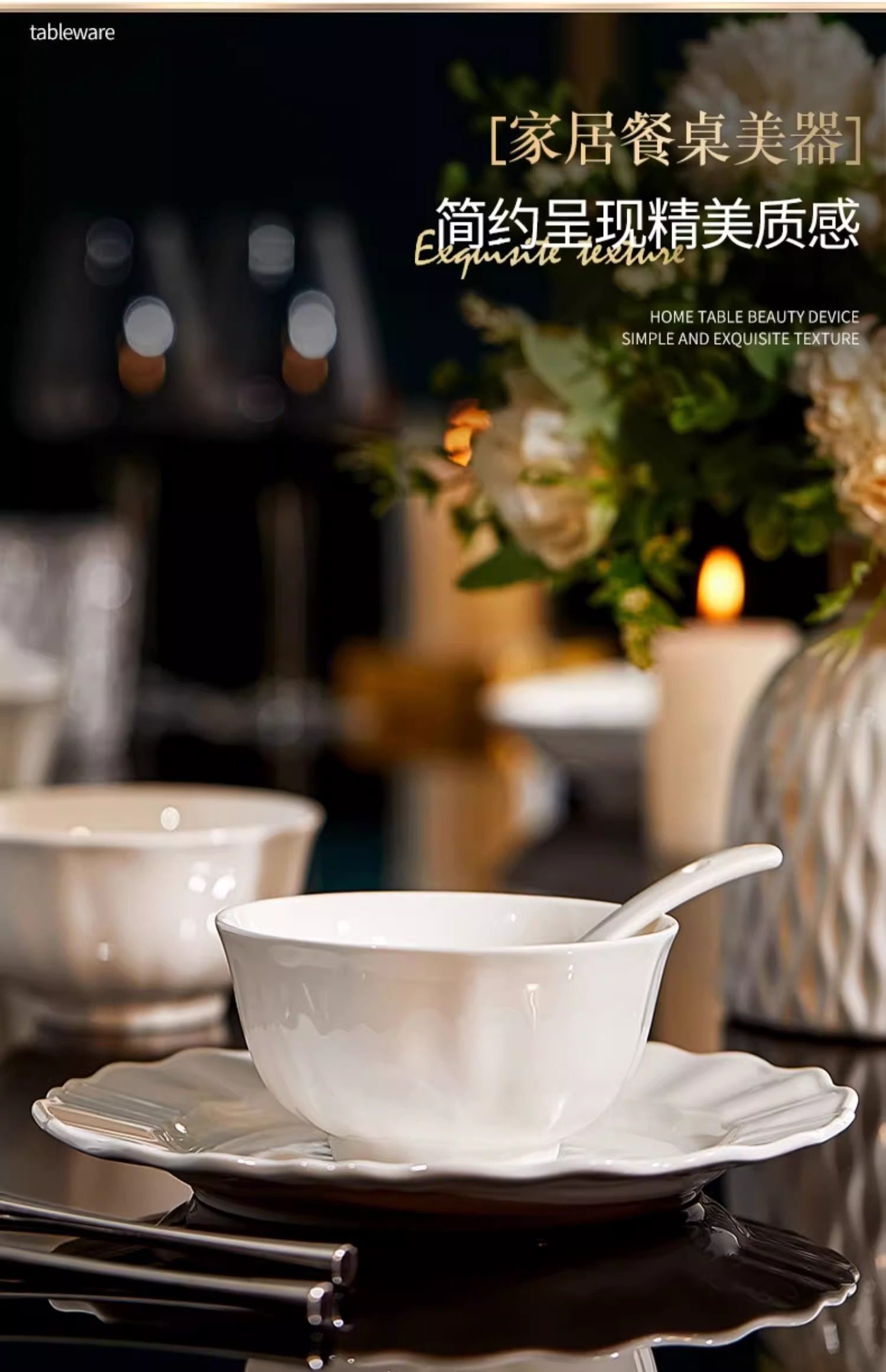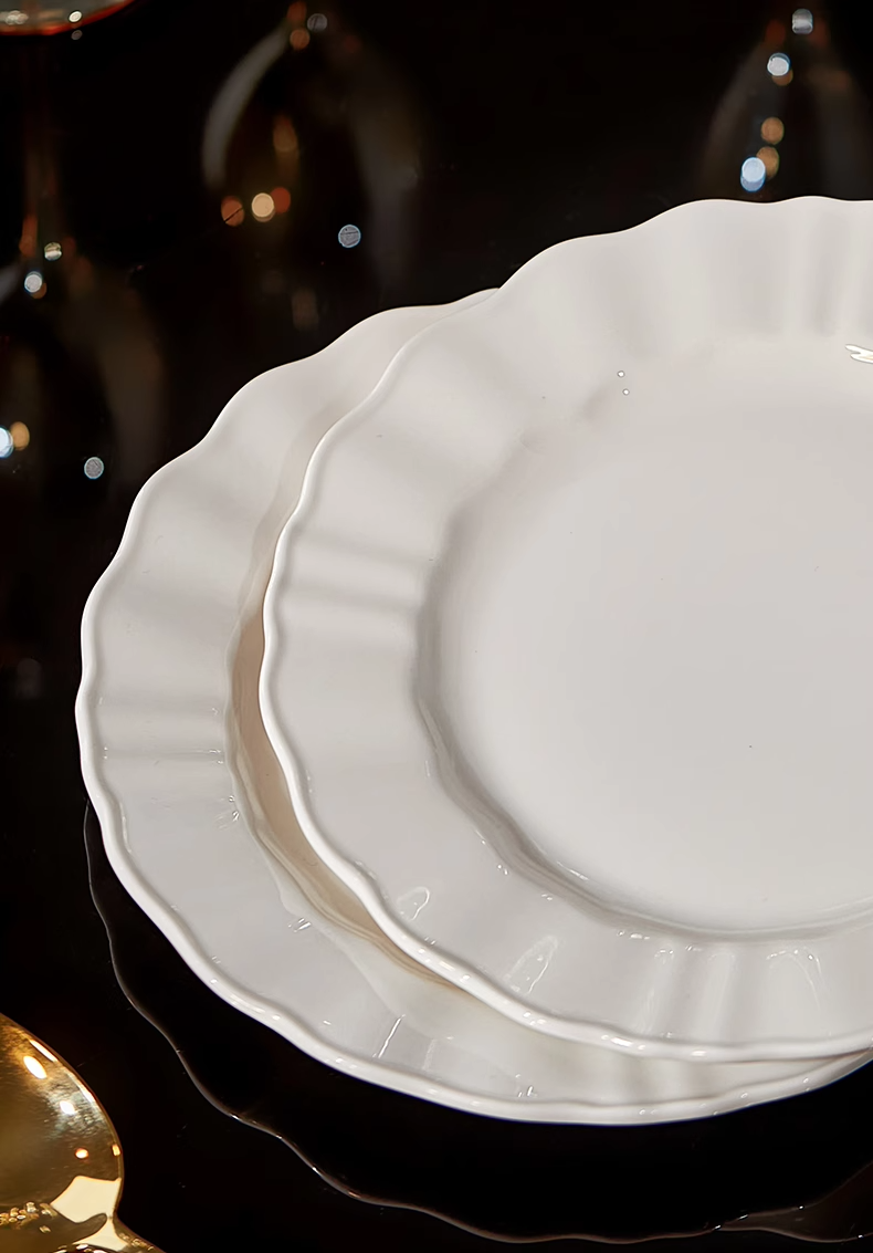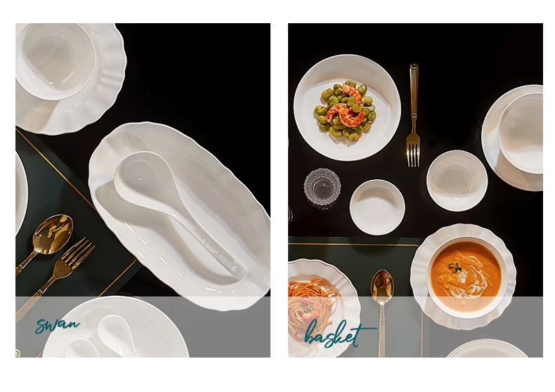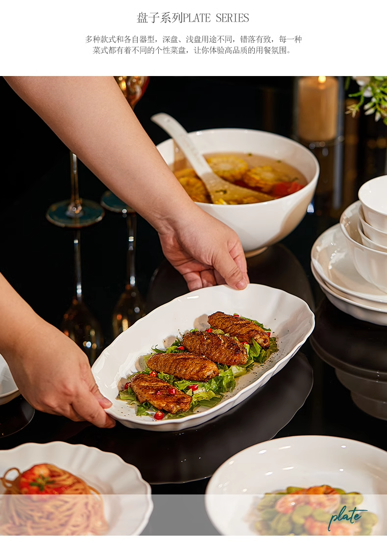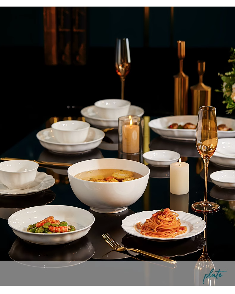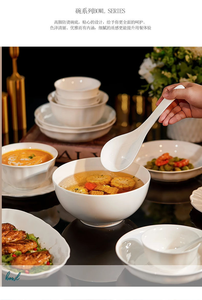 White Porcelain Bowl with Underglaze Color, Ceramic Bone China Tableware, Pure White Bowl and Plate Set, High Temperature Resistant, Household, Light Luxury, High-End Feel Bowls and Plates