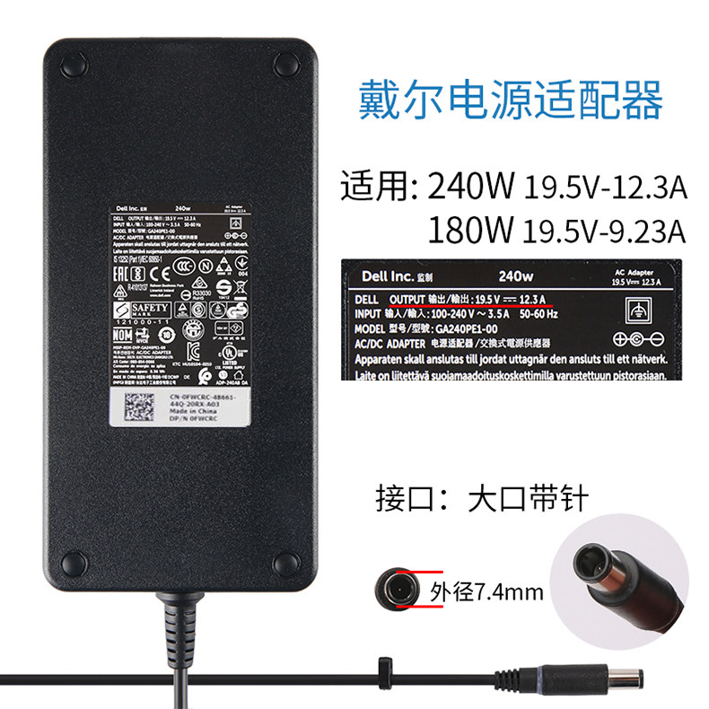 240W Dell G15 5510 5511 5515 5520 5525 G5 5500 5505 Laptop Power Adapter Charger Cable Non-Original Original 19.5V 12.3A