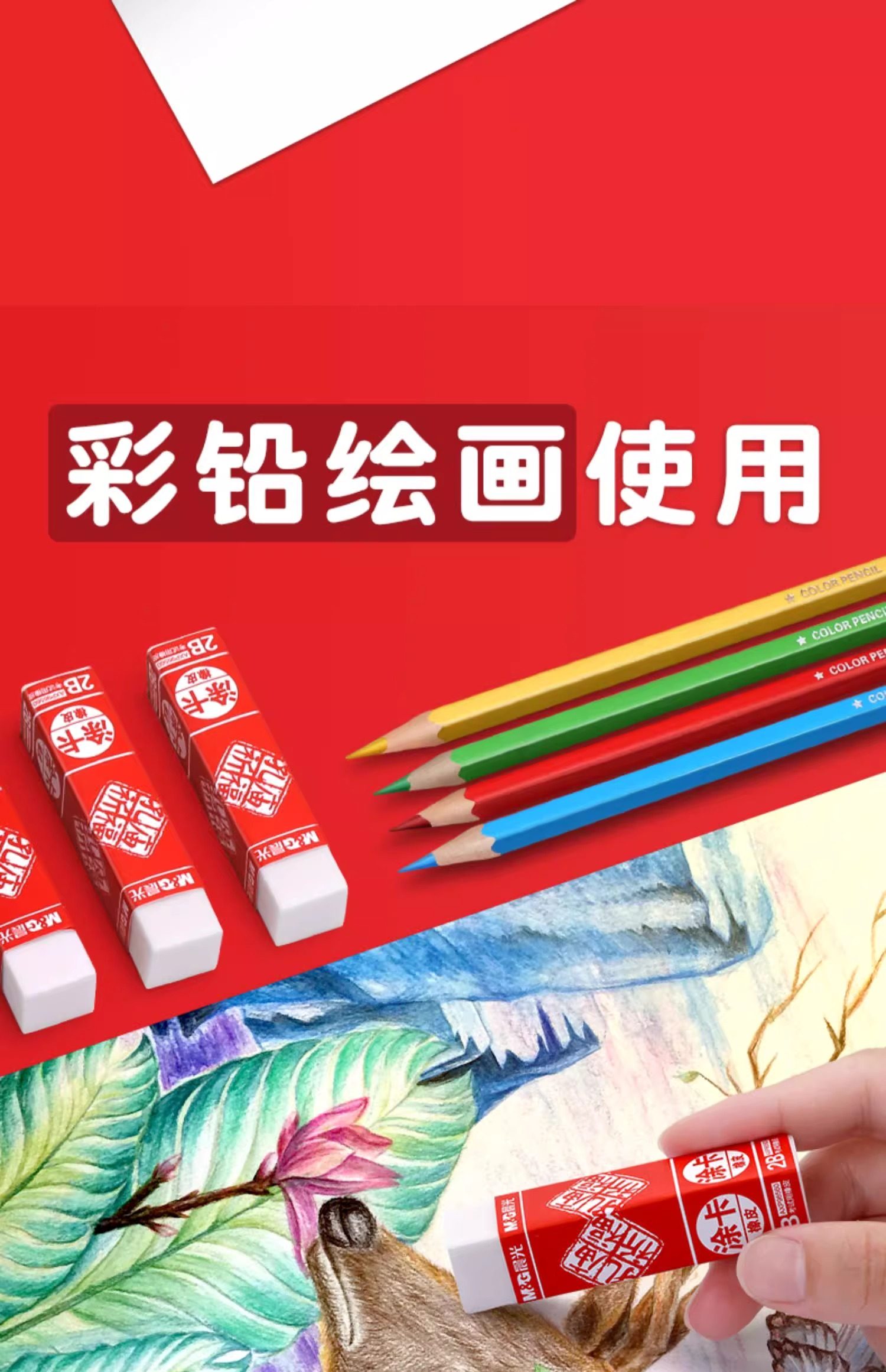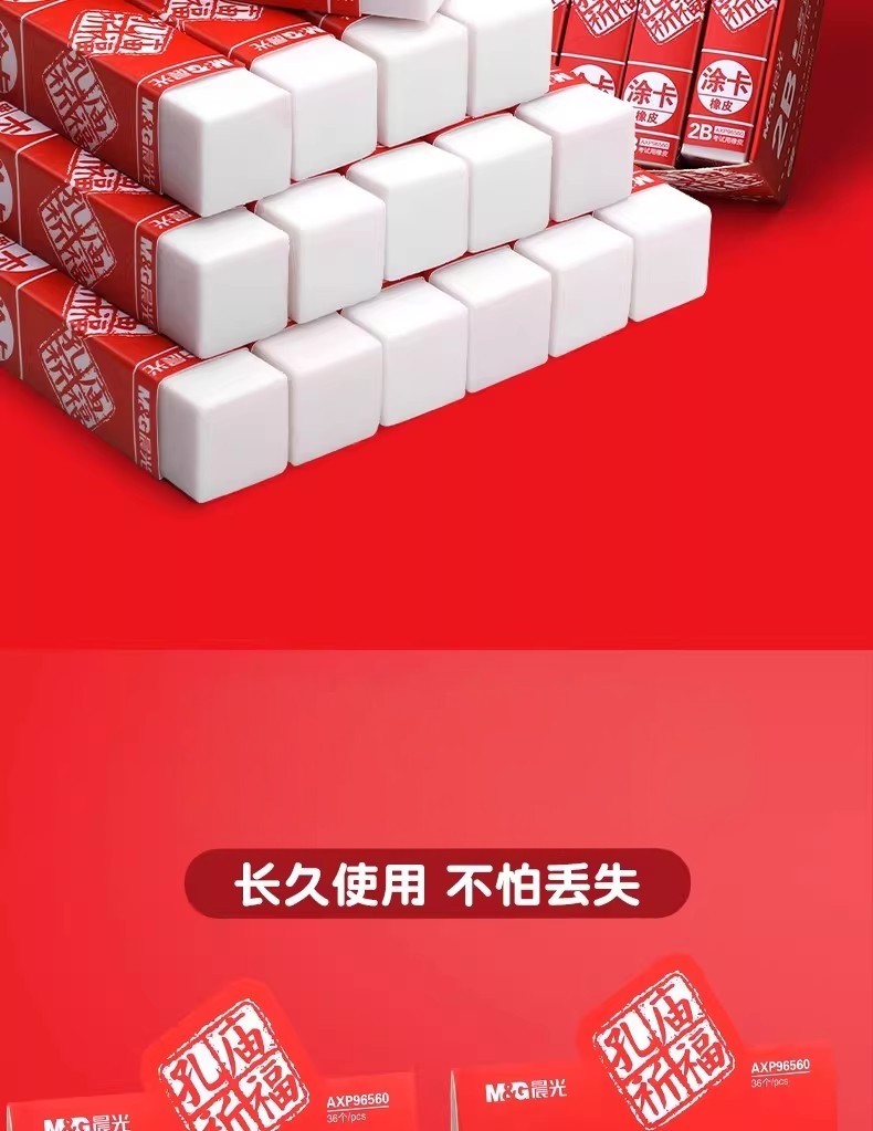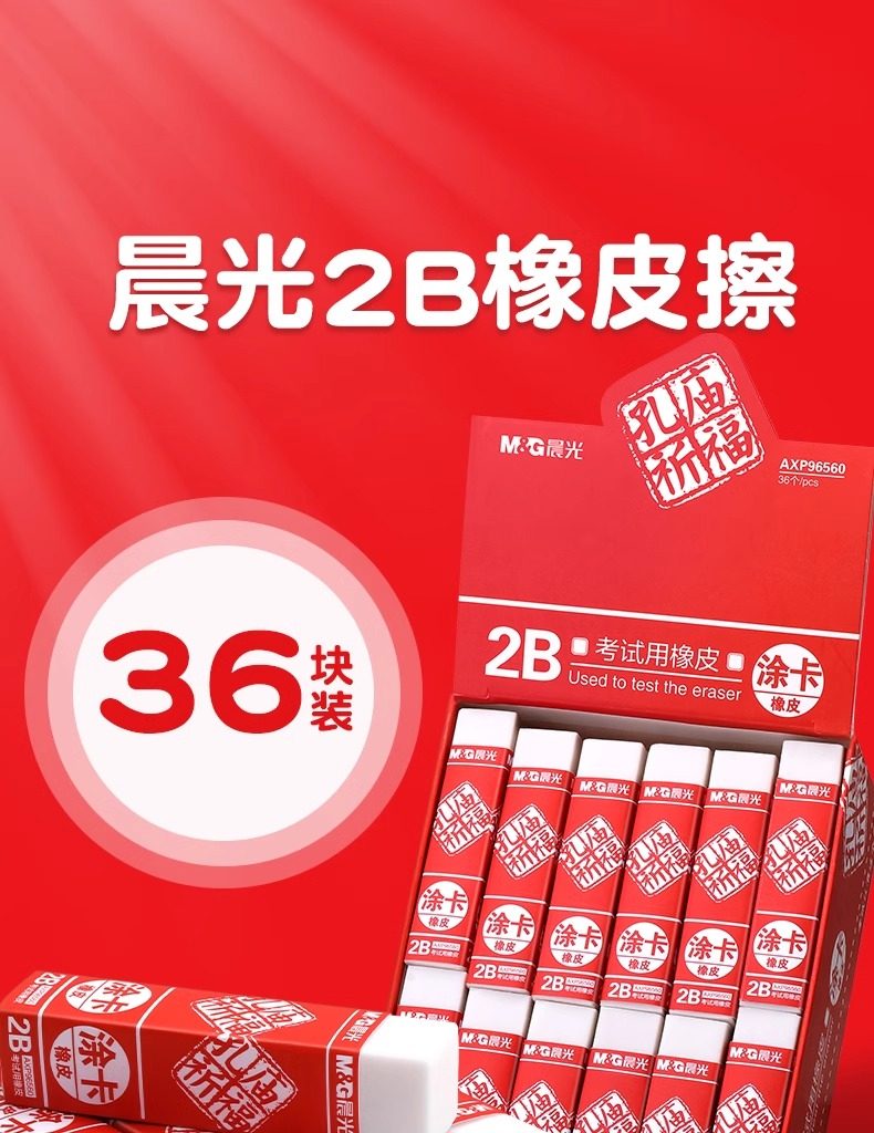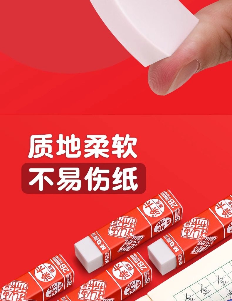 Morning Light Confucius Temple Exam-Specific 2B Eraser, No Debris, Special for Elementary Students, Erases Without Leaving Marks, Children's Eraser, Art-Specific Eraser, Pencil Stationery Supplies, 2B Eraser