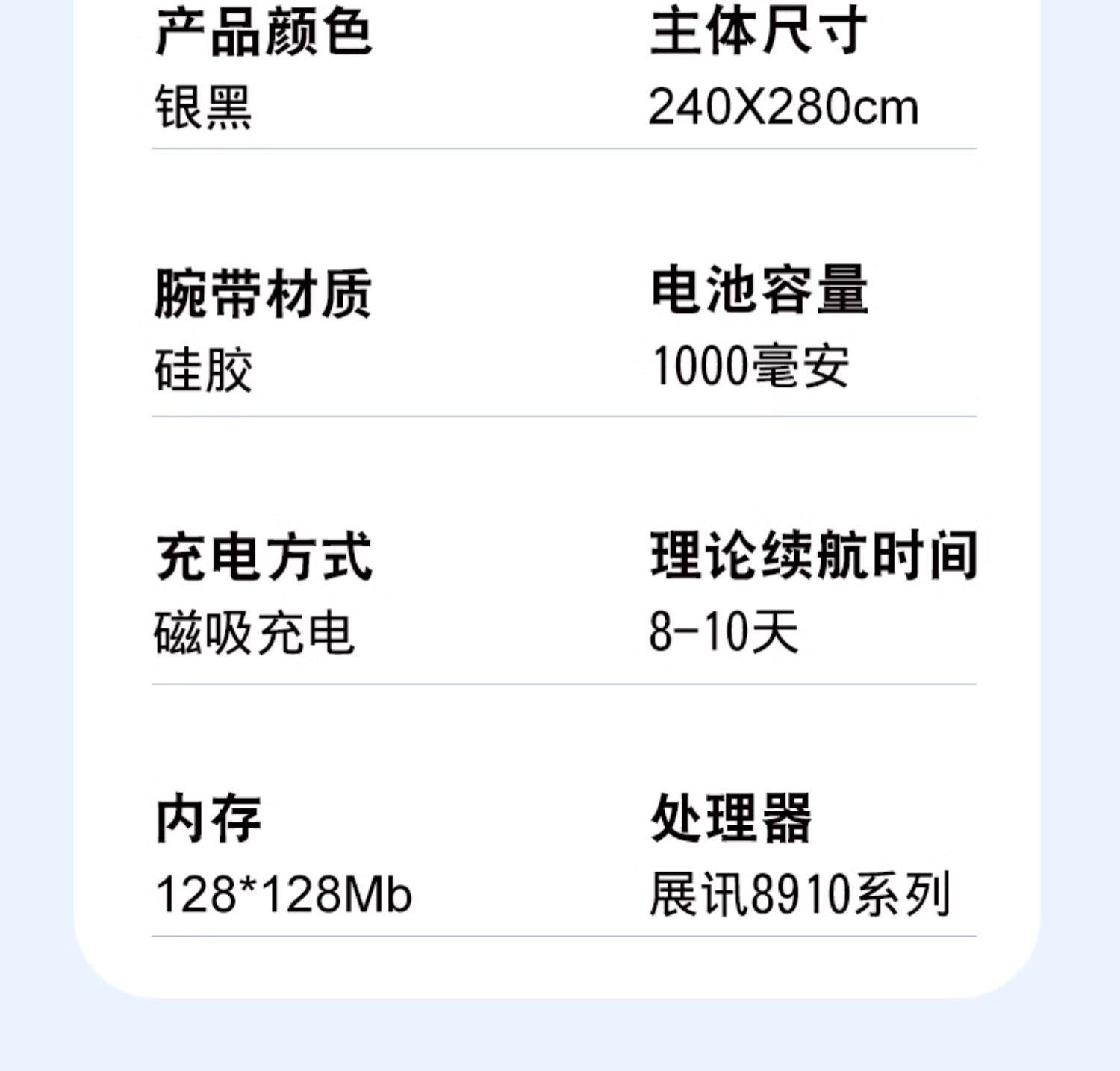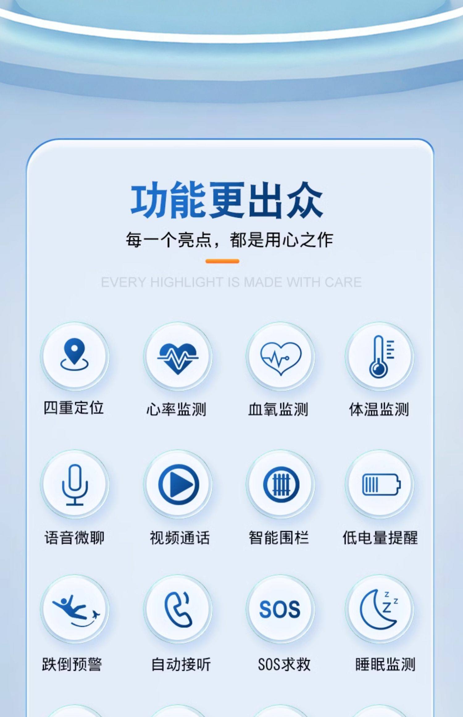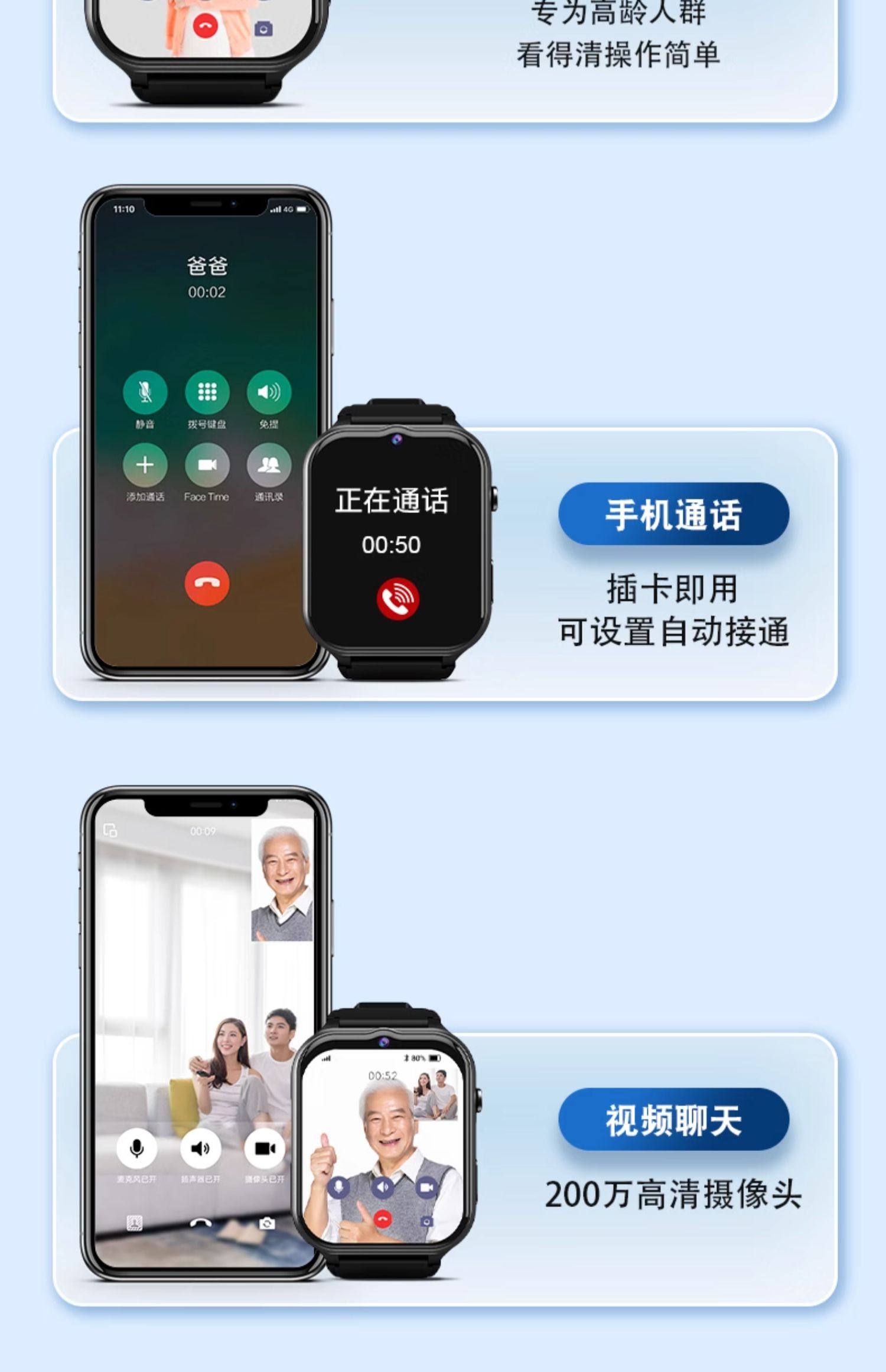 | Function | Take a Photo,Alarm Clock,Step Counting,Leave a Message,Waterproof,Day of the Week Display,Video Call,Bluetooth Call,Information Push,Heart Rate Monitoring,Blood Oxygen Detection,Smart Reminder,Sleep Monitoring,Quadruple Positioning |