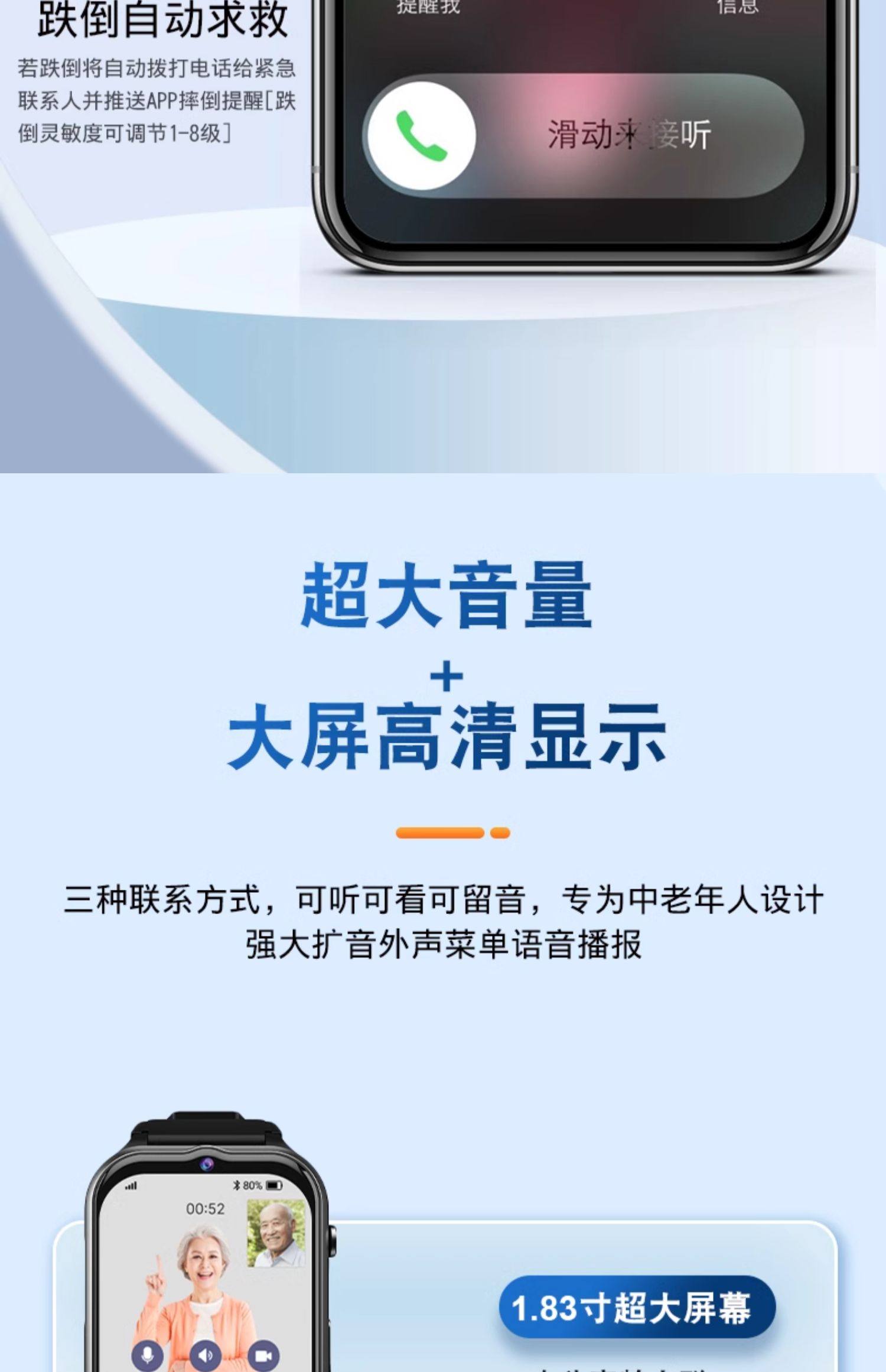 Elderly Watch with Health Remote Monitoring, Sos Call, Smart Watch for Middle-Aged and Elderly, 5g Full Network Gps Positioning Bracelet, Long Standby, Loud Volume, Large Screen, Waterproof, Sports, Sleep Monitoring, Multifunctional for Men and Women