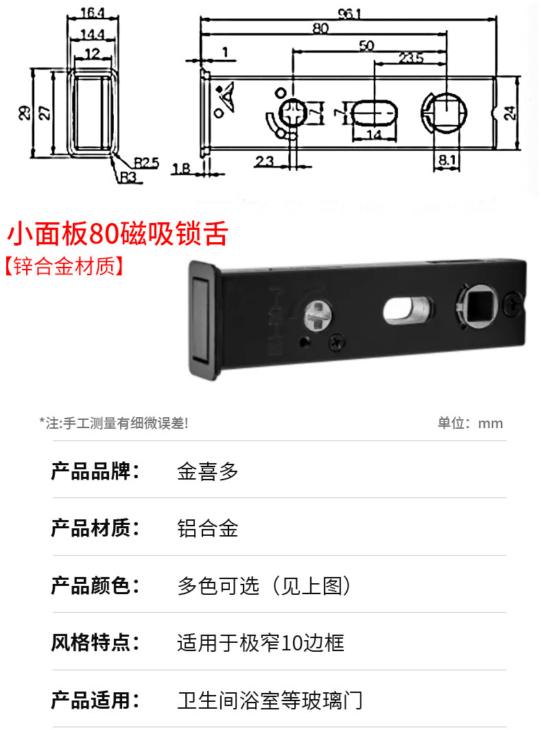 Extremely Narrow Glass Door Lock, Bathroom Glass Door Handle 1012 Frame Magnetic Latch Invisible Balcony Bathroom Handle