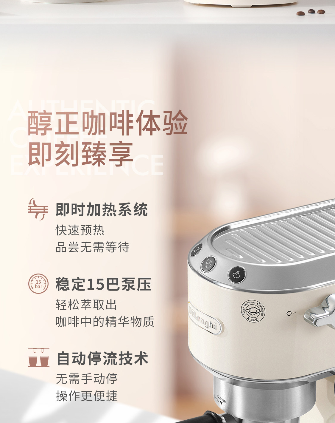 [New Year's Gift] Delonghi Ec885 Semi-Automatic Coffee Machine + Kg521 Electric Coffee Grinder Set