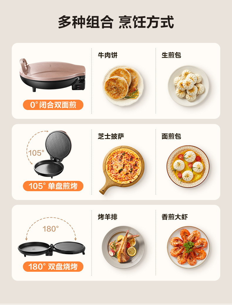 Supor Electric Griddle for Home Use, Double-Sided Heating Pancake Maker, Electric Griddle Frying Pan, Deepened and Enlarged, 2025 New Model, Genuine Product