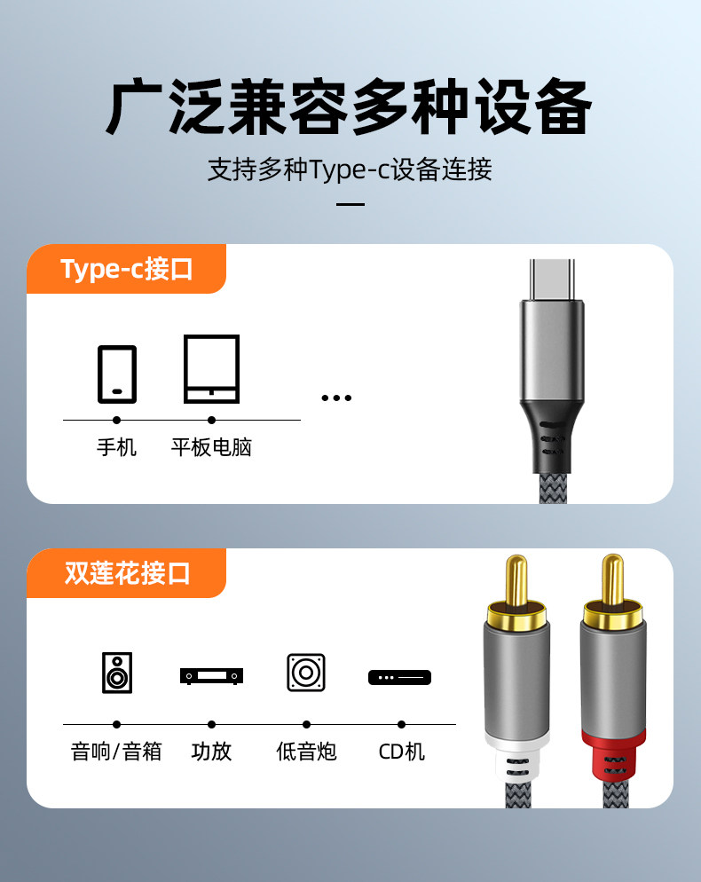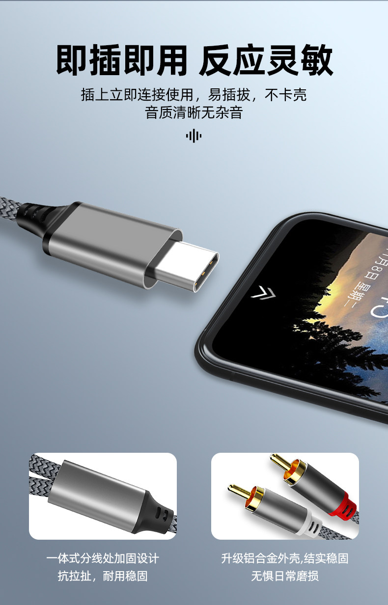 | Color Classification | 1m Silver/Grey[Type-C to Dual Rca Audio Cable],1.5m Silver/Grey[Type-C to Dual Rca Audio Cable],2m Silver/Grey[Type-C to Dual Rca Audio Cable],3m Silver/Grey[Type-C to Dual Rca Audio Cable],Customizable Length, Please Contact Customer Service |
