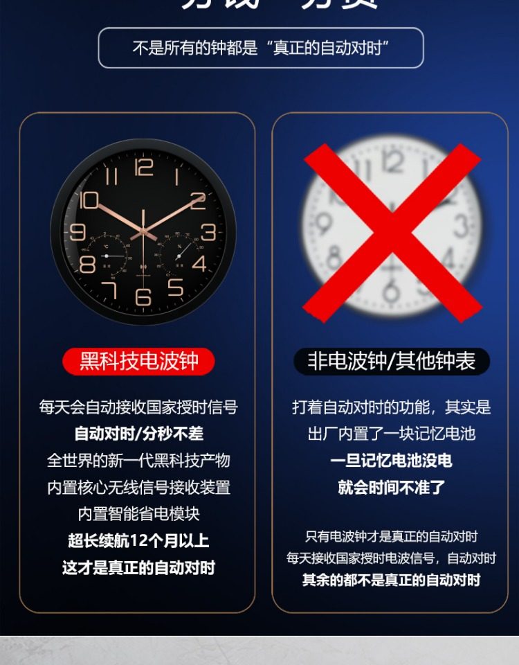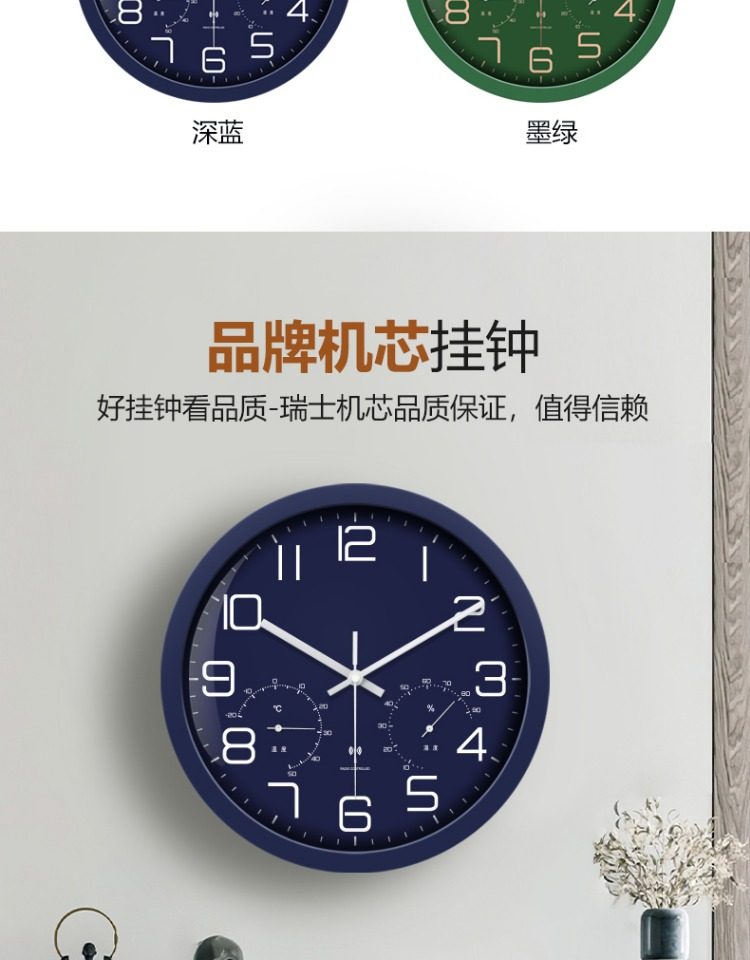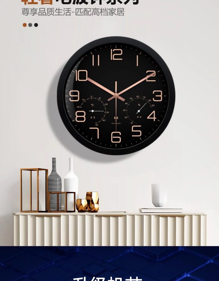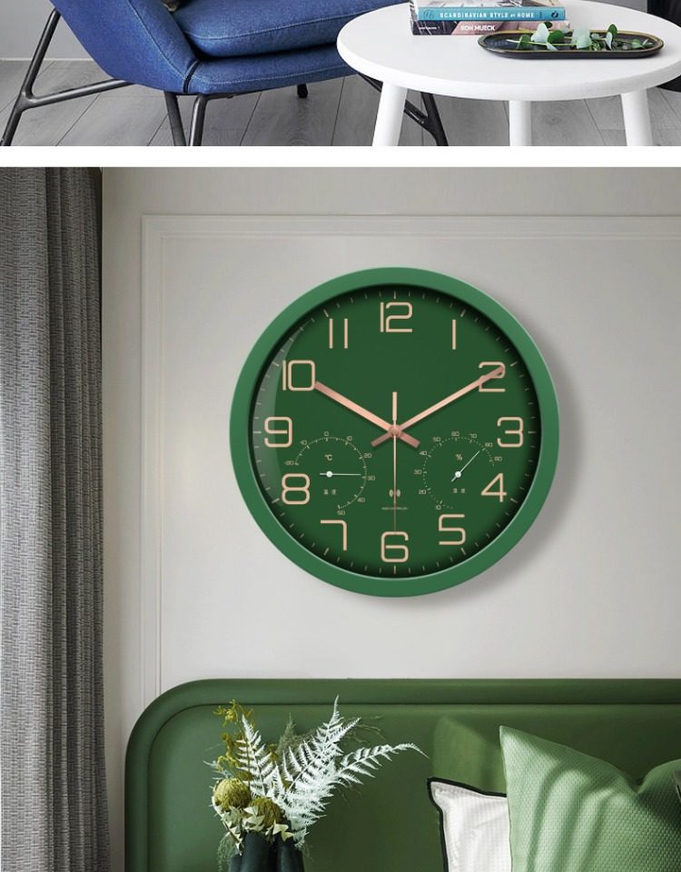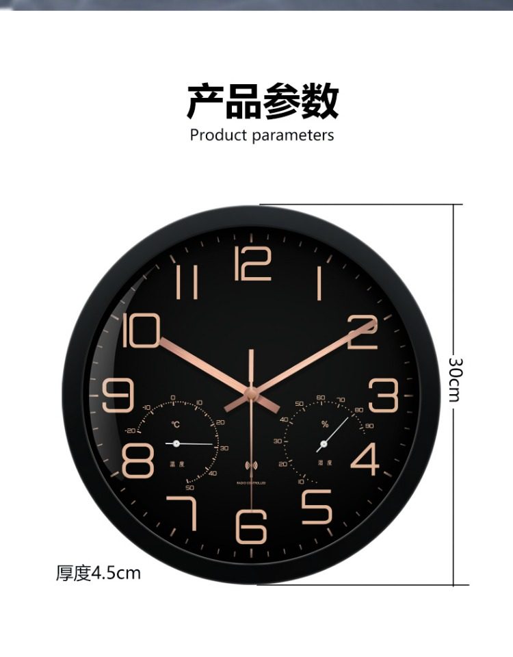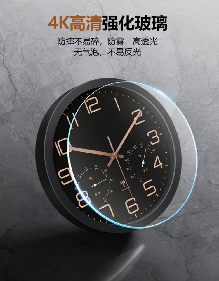 No-Drill Clock Wall Clock for Living Room, Round Temperature and Humidity Automatic Time Adjustment Electronic Clock, Wall-Mounted Quartz Clock