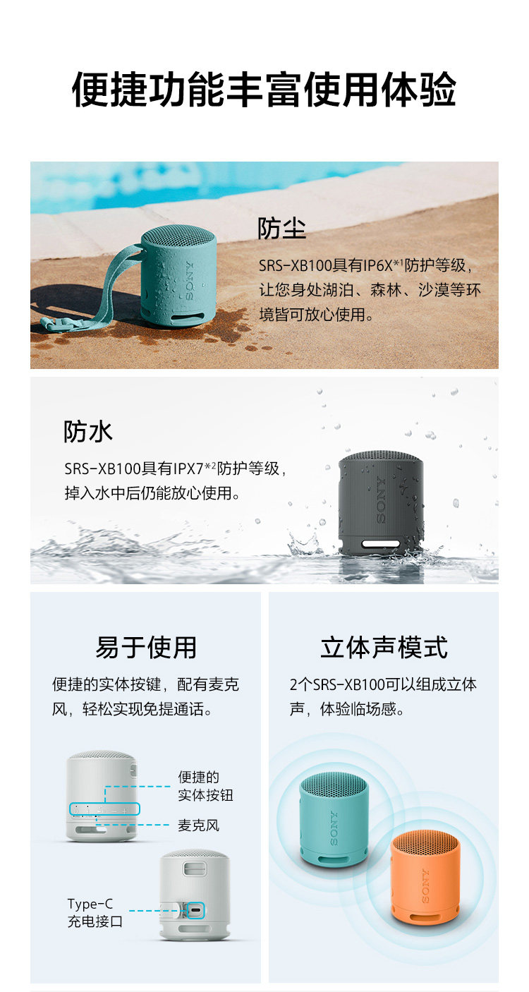Sony Srs-Xb100 Wireless Bluetooth Speaker Subwoofer Portable Waterproof Outdoor Small Speaker