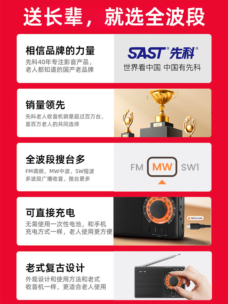 Xianke Radio for the Elderly, Full-Band Satellite Semiconductor Broadcast Player, 2025 New Model