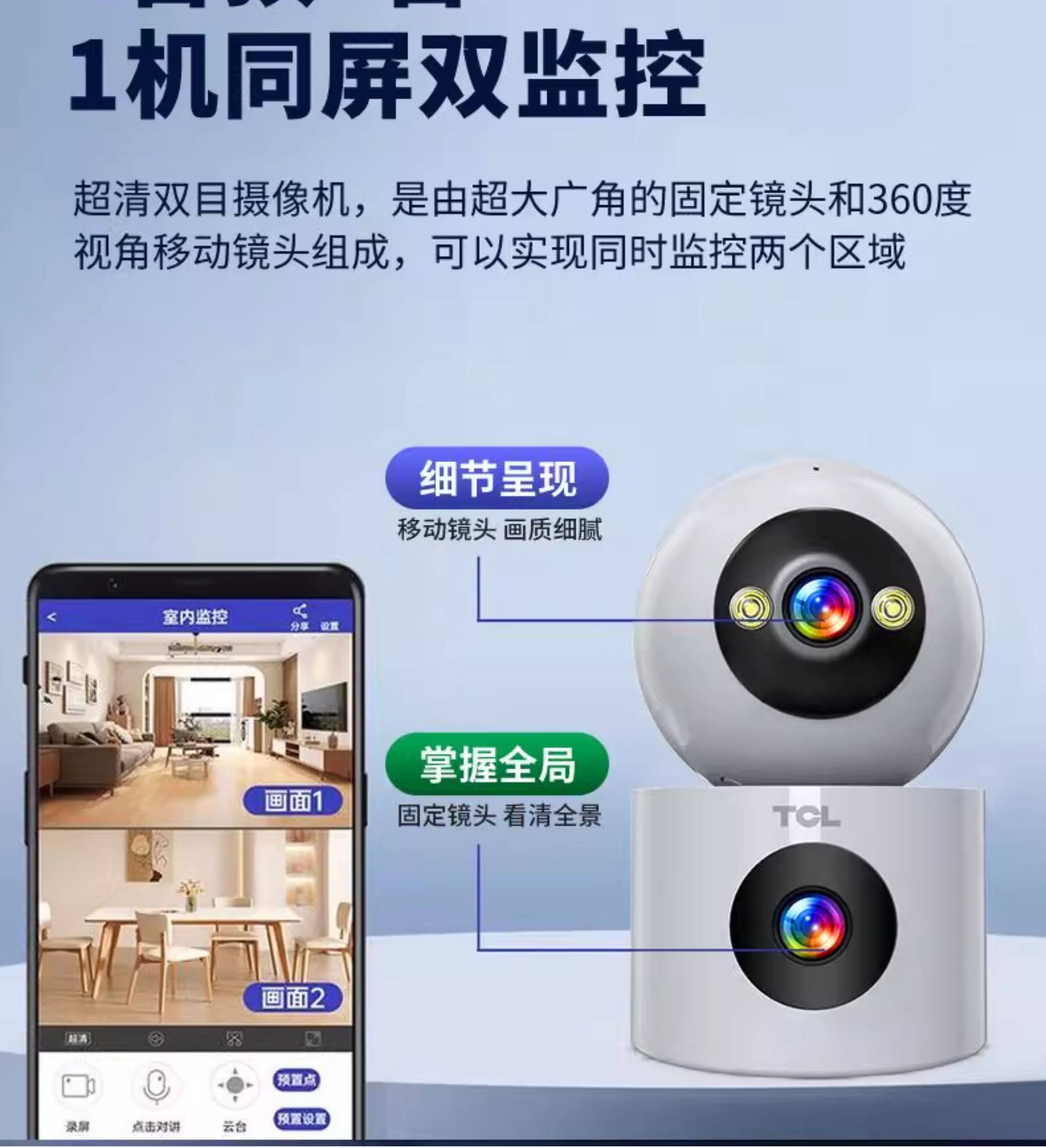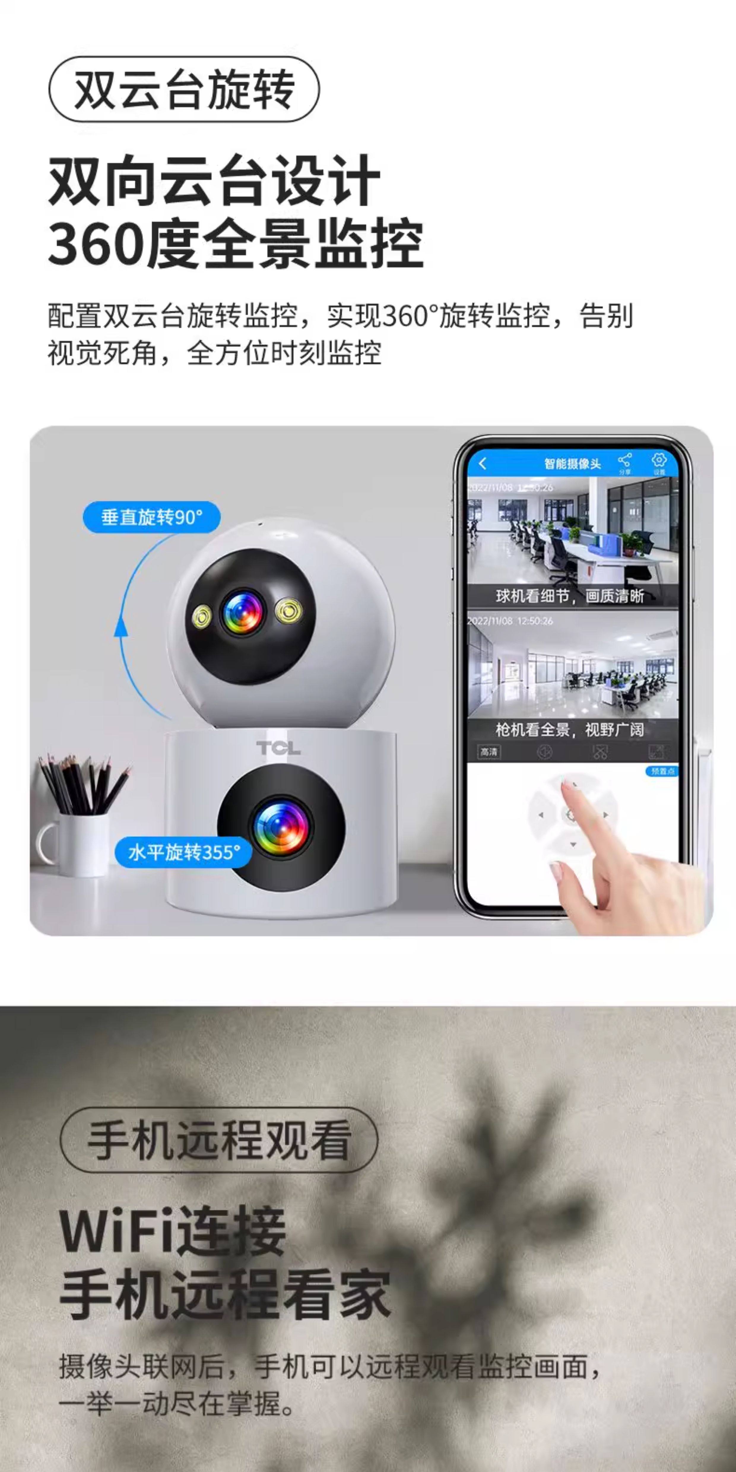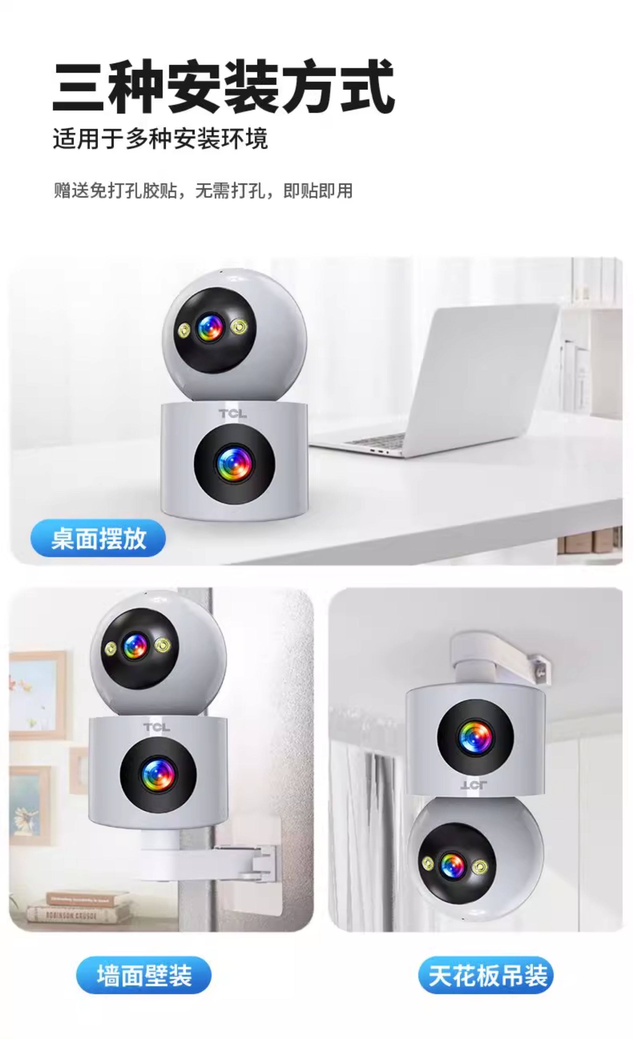Tcl Dual-Camera Ultra-High-Definition Home 360-Degree Panoramic Viewing with Mobile Phone Remote Wireless Wifi Monitor