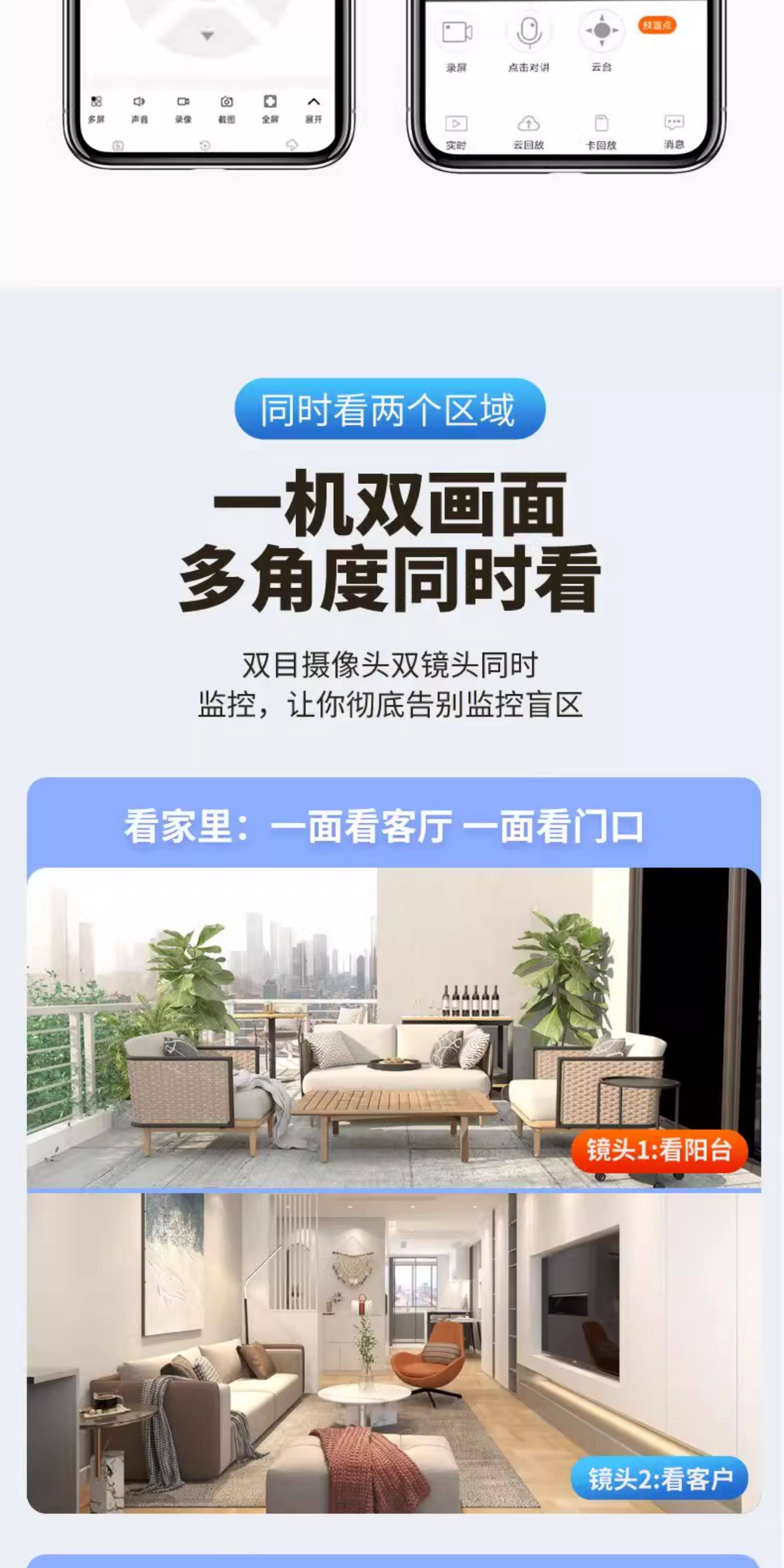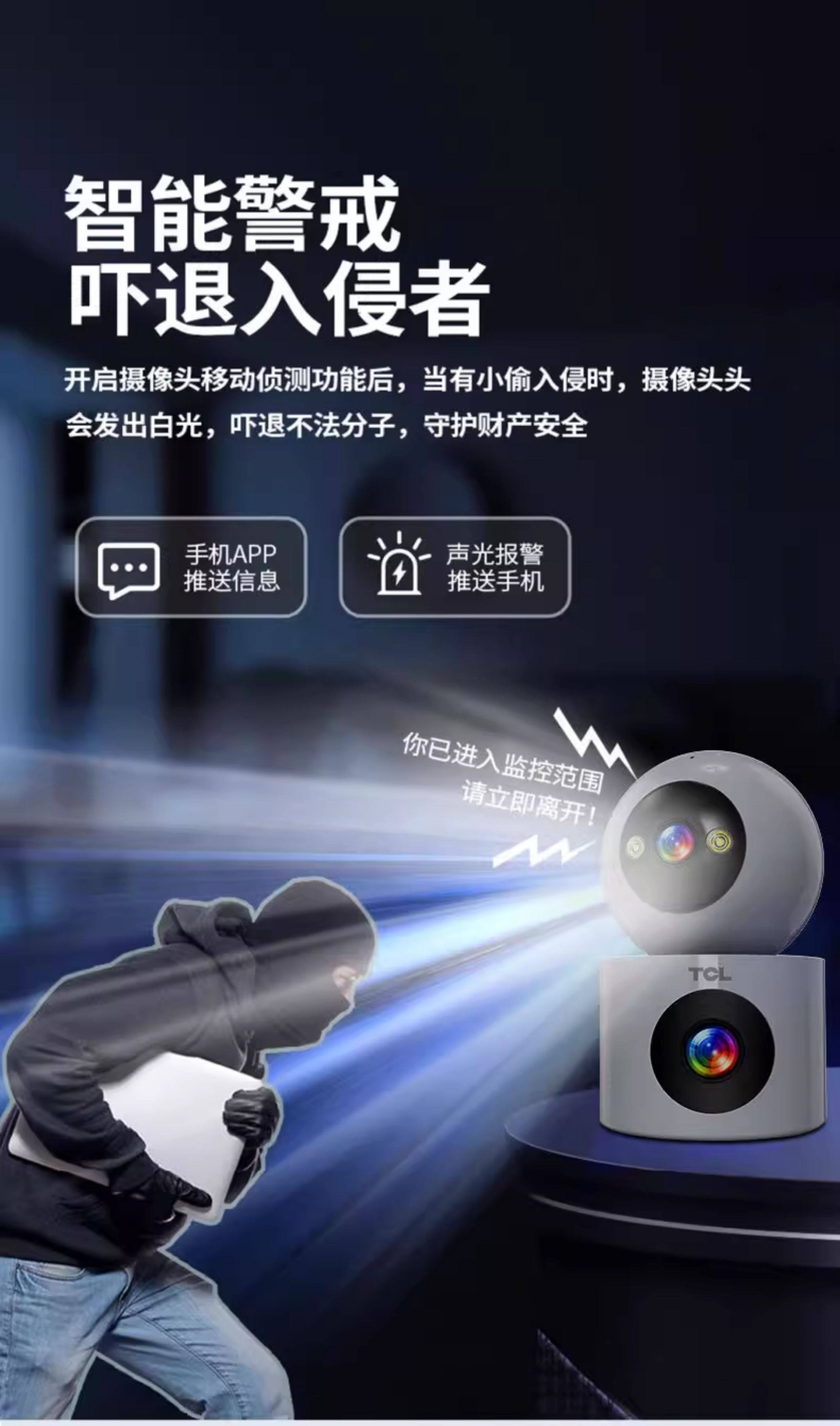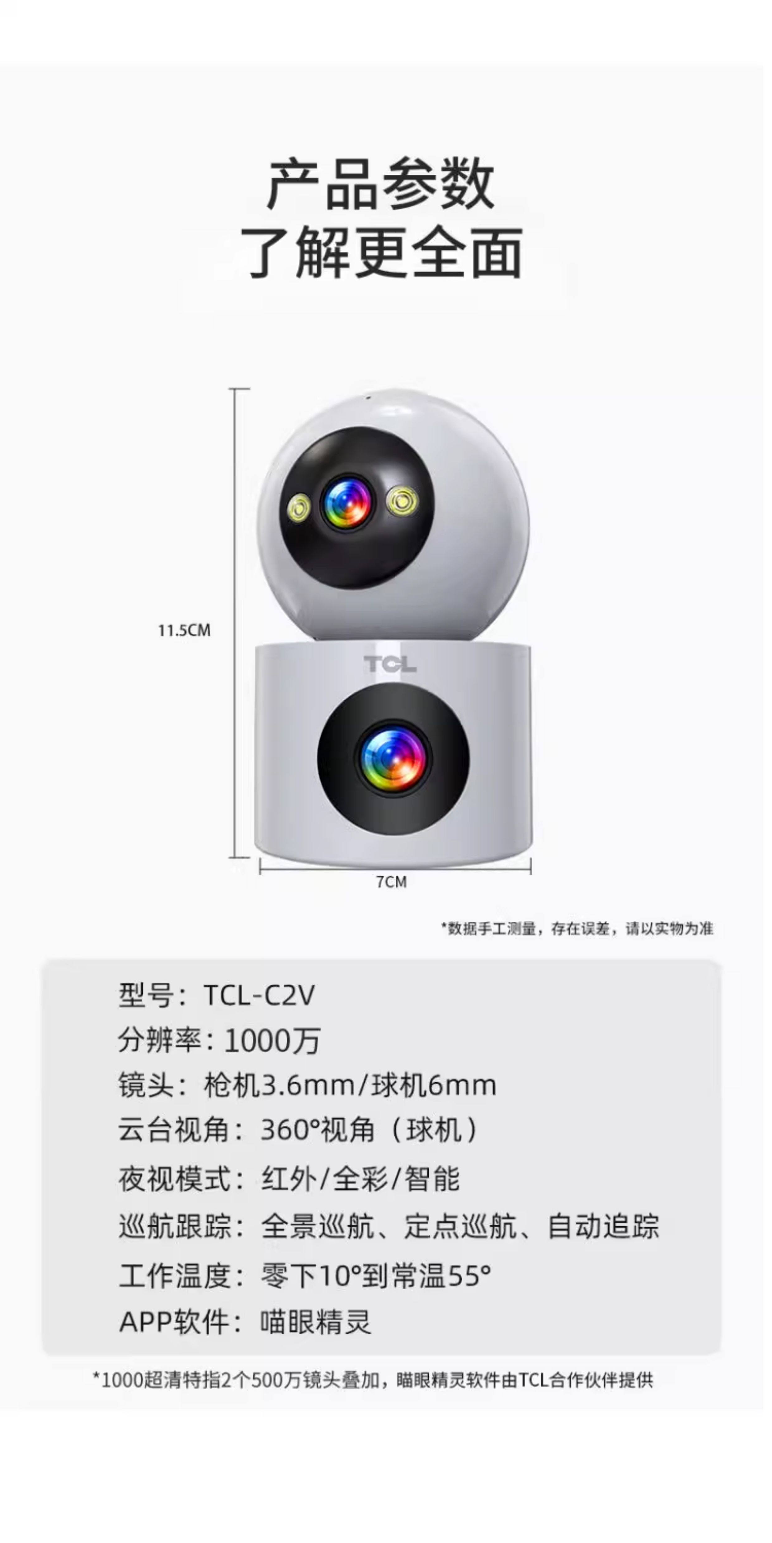 Tcl Dual-Camera Ultra-High-Definition Home 360-Degree Panoramic Viewing with Mobile Phone Remote Wireless Wifi Monitor