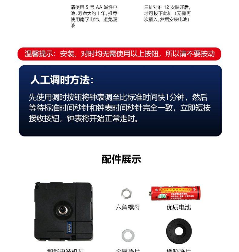 Smart Movement Radio-Controlled Movement Automatic Time-Setting Clock Movement Wall Clock Universal Silent Cross-Stitch DIY Quartz Clock Movement