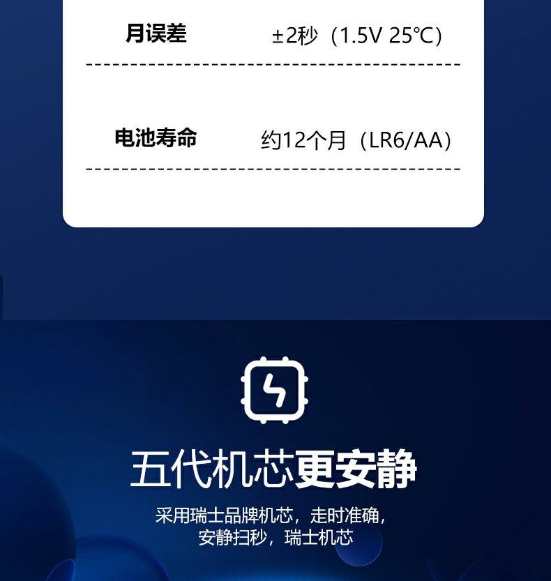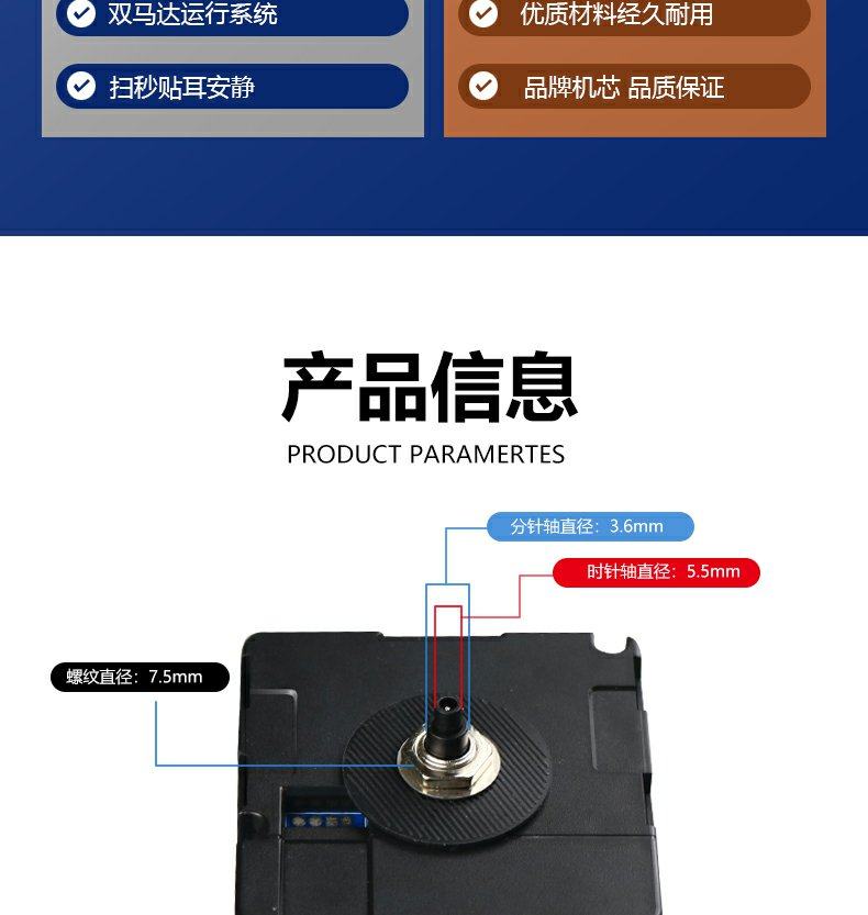 | Size | Silent Sweep-Second Movement[Standard Shaft Length] |