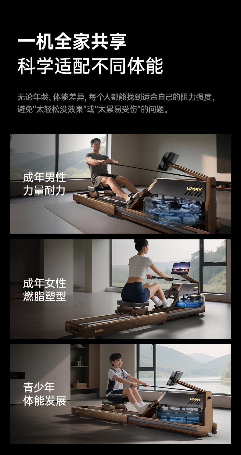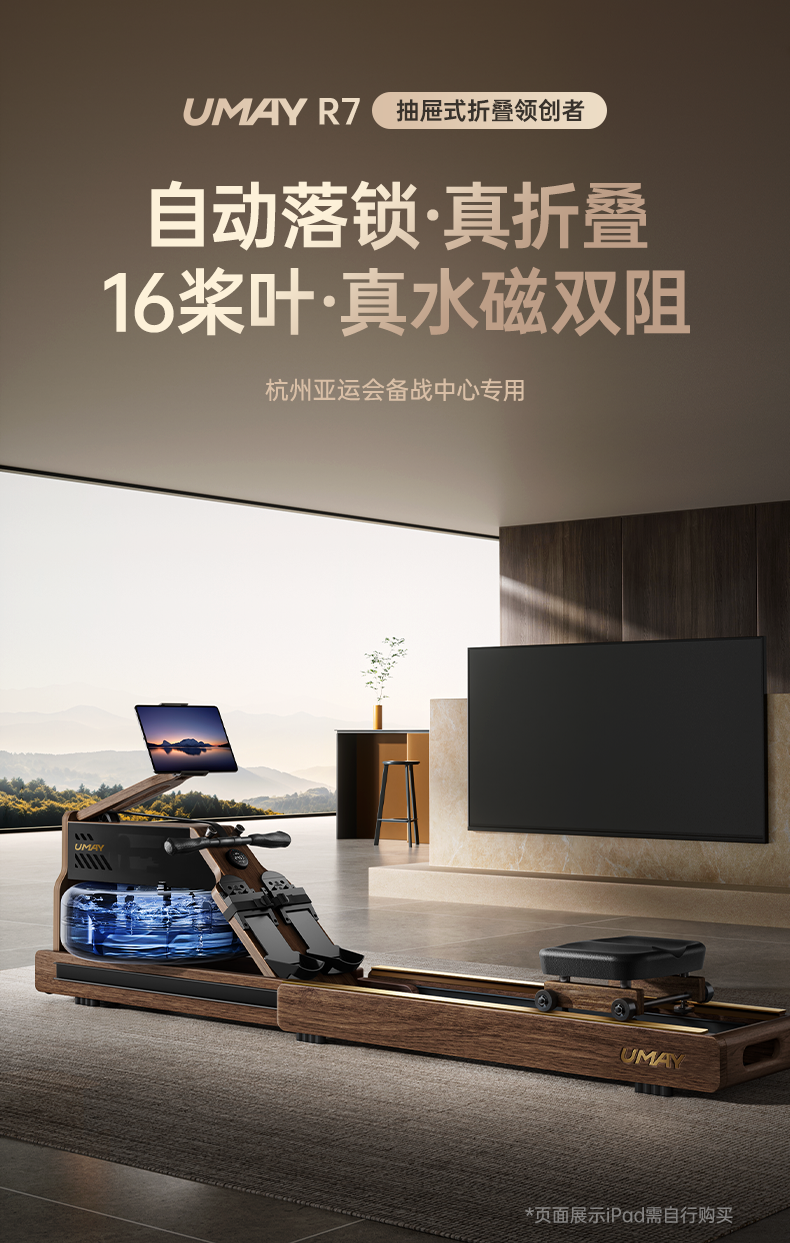 Youmei Rowing Machine for Home Use, Foldable, Water-Magnetic Dual Resistance, Smart Fitness Equipment, Fat-Burning Comprehensive Training Rowing Machine R7