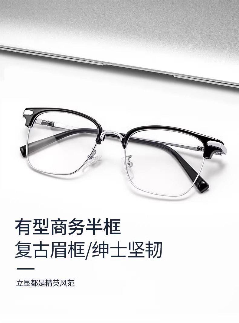 Half-Frame Myopia Glasses for Women, Pure and Elegant Style, High Appearance Value, Makes the Face Look Smaller, Can Be Fitted with Prescription Lenses, Astigmatism, Refined and Intellectual Style, Glasses Frame for Men