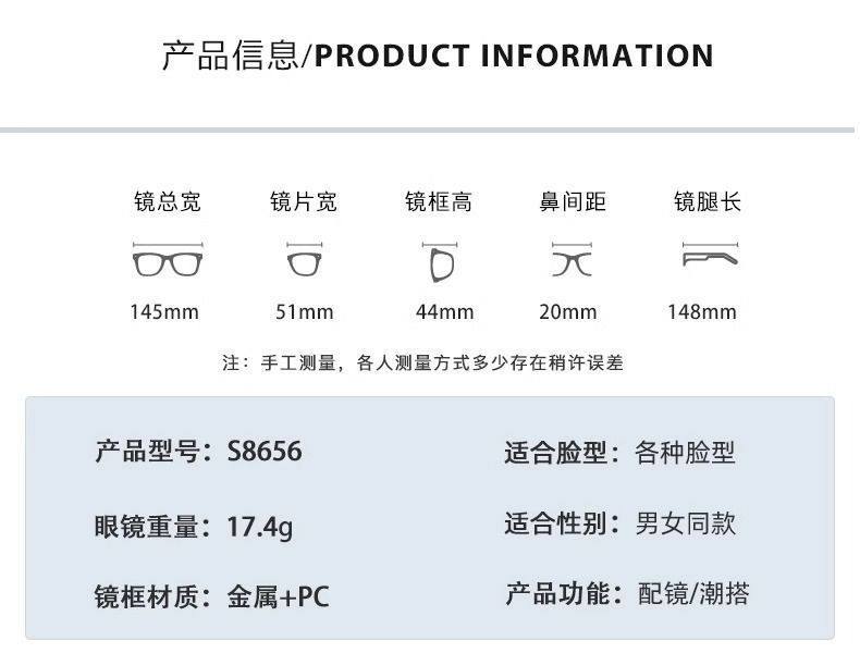 | Lens Refractive Index | 50 Degrees for Both Eyes - Collect and Receive a Lens Box and Lens Cloth,75-Degree Eyeglasses - Includes Free Case and Cleaning Cloth,100 Degrees for Both Eyes - Free Lens Box and Lens Cloth for Collection,Double Vision Correction of 125 Degrees - Includes a Free Case and Cleaning Cloth with Purchase.,Eyeglasses for 150 Degrees of Vision - Includes a Free Case and Cleaning Cloth.,Double Vision 175 Degrees - Collect and Receive a Free Lens Case and Lens Cloth,200 Degrees for Both Eyes - Free Lens Box and Lens Cloth for Collection,225 Degrees for Both Eyes - Free Lens Box and Lens Cloth for Collection,250 Degrees for Both Eyes - Free Lens Box and Lens Cloth for Collection,275 Degrees for Both Eyes - Free Lens Box and Lens Cloth for Collection,Eyeglasses for -3.00 Diopters - Includes Free Case and Cleaning Cloth!,325 Degrees in Both Eyes - Add to Favorites and Get a Free Case and Cleaning Cloth!,350 Degrees for Both Eyes - Includes Free Case and Cleaning Cloth!,400 Degrees for Both Eyes - Free Lens Box and Lens Cloth for Collection,Eyeglasses for -4.50 Diopters - Includes Free Case and Cleaning Cloth.,500 Degrees for Both Eyes - Collect and Receive a Free Lens Box and Lens Cloth,550 Degrees for Both Eyes - Free Lens Box and Lens Cloth for Collection,600 Degrees for Both Eyes - Collect and Receive a Free Lens Box and Lens Cloth,Different Degrees for Left and Right Eyes [Contact Customer Service to Place an Order],Non-Prescription Anti-Blue Light Glasses + Lens Box and Lens Cloth,Single Non-Prescription Anti-Blue Light Glasses,Custom 1.61 Lenses Require an Additional $30. Lens Cloth Will Not Be Included if Not Added. |