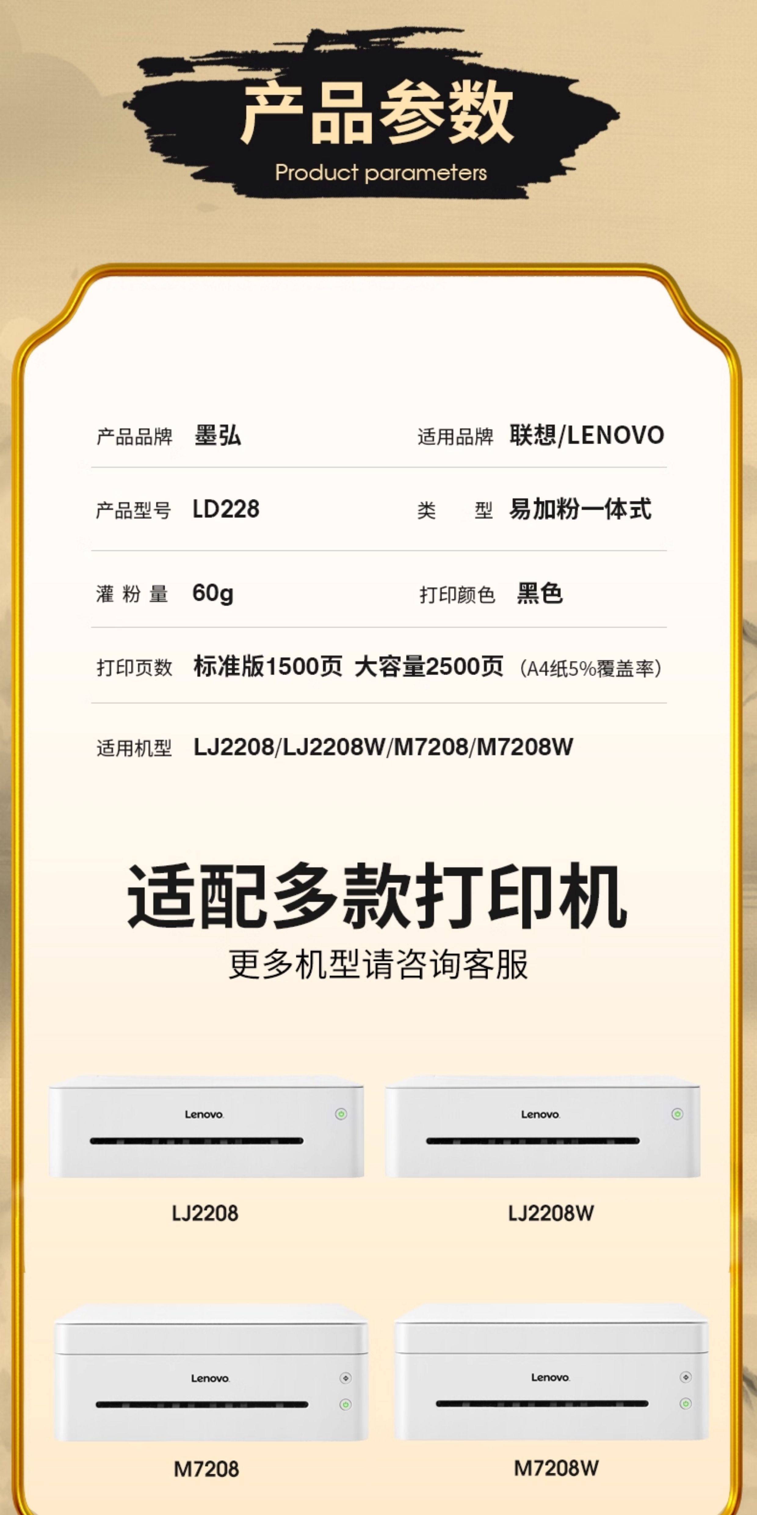 Mo Hong Is Suitable for Lenovo Lj2208W Toner Cartridge Lenovo M7208W Drying Drum Toner M7218W Toner Cartridge Lj2218 Powder Cartridge Ld228 Toner Cartridge