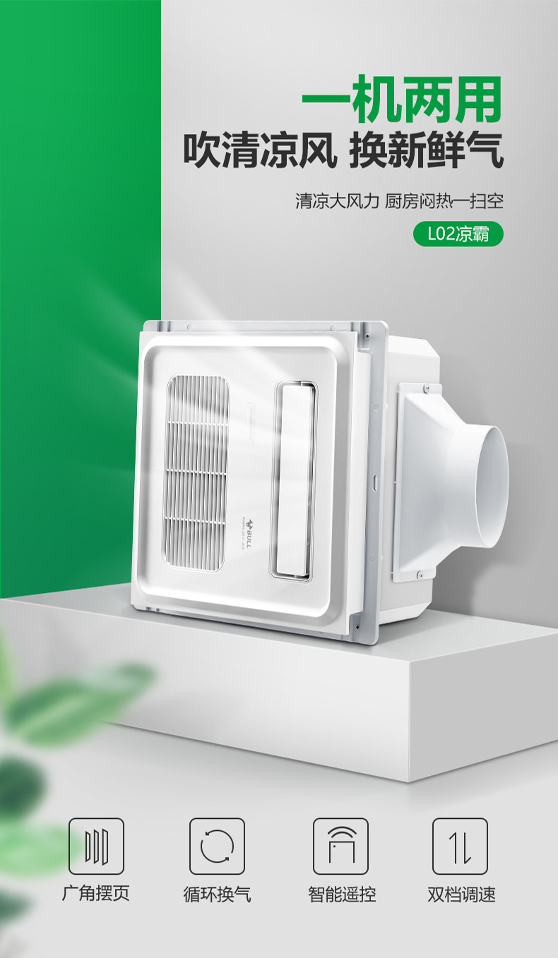 Bull Remote Control Cooling Fan for Kitchen, Embedded Cooling Fan for Bathroom, Integrated Ceiling Fan and Ventilation 2-in-1