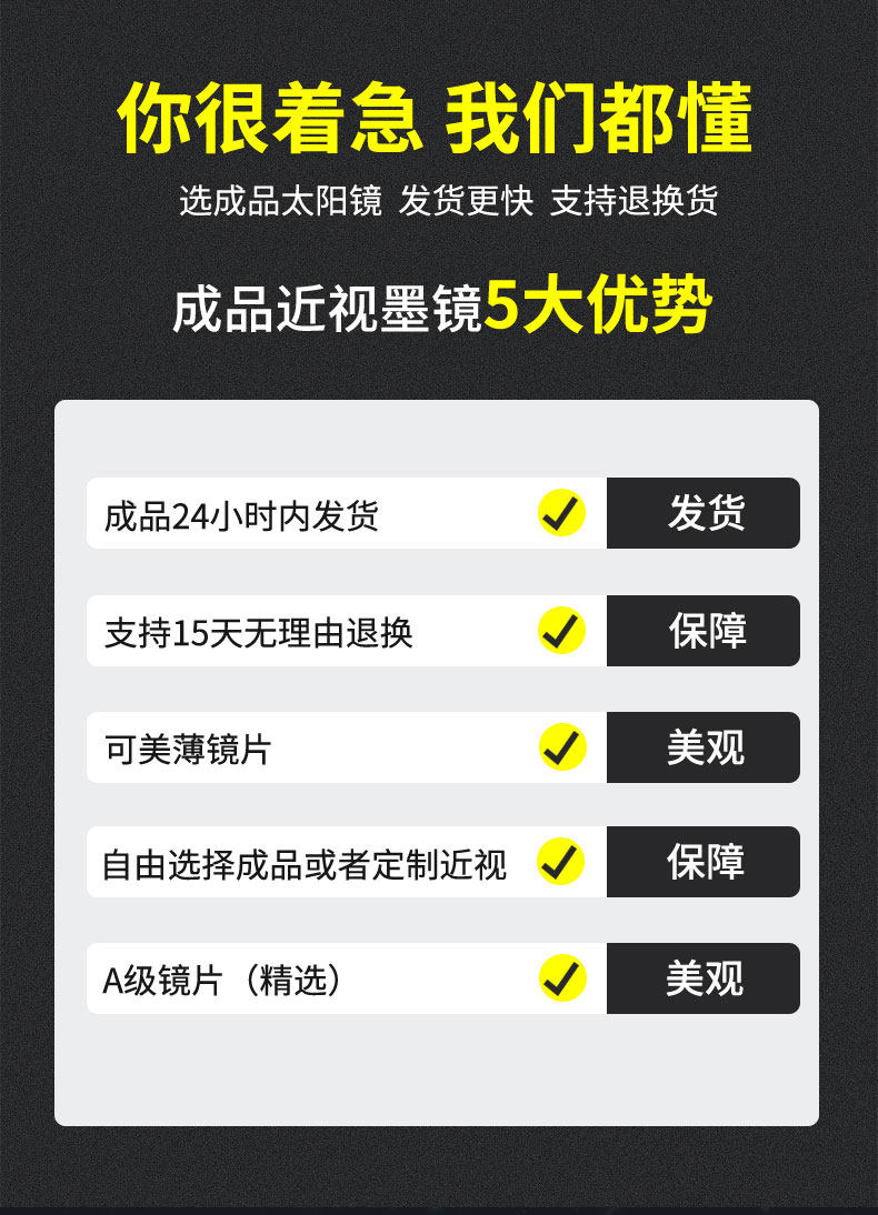 | Color Classification | Finished Products with 0-575 Degrees in Both Eyes Support Returns and Exchanges! in Stock, Quick Delivery!,[Blocks 100% of Uv Rays] Sunscreen Sunglasses, Protect Your Skin!,[No Degree] 5013 Black [Tan Songyun Same Style, Counter Quality],Sun Protection [One-Piece Single-Layer] Sunglasses↓↓↓,[50 Degrees for Both Eyes] 5013 Sunglasses, Returnable and Exchangeable!,[75 Degrees between Eyes] 5013 Sunglasses, Returnable and Exchangeable!,【Double Vision 100°】5013 Sunglasses, Returns Accepted!,[125 Degrees between Eyes] 5013 Sunglasses, Returnable and Exchangeable!,[150 Degrees for Both Eyes] 5013 Sunglasses, Returnable and Exchangeable!,[175 Degrees for Both Eyes] 5013 Sunglasses, Returnable and Exchangeable!,[200 Degrees in Both Eyes] 5013 Sunglasses, Returnable and Exchangeable!,[225 Degrees for Both Eyes] 5013 Sunglasses, Returnable and Exchangeable!,[250 Degrees for Both Eyes] 5013 Sunglasses, Returnable and Exchangeable!,[275 Degrees in Both Eyes] 5013 Sunglasses, Returnable and Exchangeable!,[300 Degrees in Both Eyes] 5013 Sunglasses, Returnable and Exchangeable!,[325 Degrees for Both Eyes] 5013 Sunglasses, Returnable and Exchangeable!,[350 Degrees for Both Eyes] 5013 Sunglasses, Returnable and Exchangeable!,[375 Degrees for Both Eyes] 5013 Sunglasses, Returnable and Exchangeable!,[400 Degrees in Both Eyes] 5013 Sunglasses, Returnable and Exchangeable!,[425 Degrees for Both Eyes] 5013 Sunglasses, Returnable and Exchangeable!,[450 Degrees for Both Eyes] 5013 Sunglasses, Returnable and Exchangeable!,[475 Degrees in Both Eyes] 5013 Sunglasses, Returnable and Exchangeable!,[500 Degrees in Both Eyes] 5013 Sunglasses, Returnable and Exchangeable!,[525 Degrees in Both Eyes] 5013 Sunglasses, Returnable and Exchangeable!,[550 Degrees for Both Eyes] 5013 Sunglasses, Returnable and Exchangeable!,[575 Degrees for Both Eyes] 5013 Sunglasses, Returnable and Exchangeable!,20 Years of Experience in Brick-And-Mortar Opticians, Full Refund if the Prescription Is Incorrect! Order Your Prescription Lenses Here →,5013 Black Frame [0-500 Degrees] with 1.61 Myopia Polarized Sunglasses [Free Cloud Bag],5013 Black Frame [0-800 Degrees] with 1.67 Myopia Polarized Sunglasses [Free Cloud Bag] |
