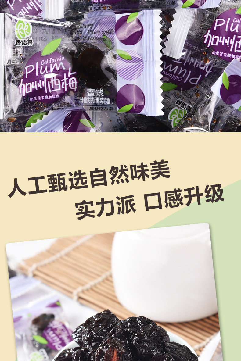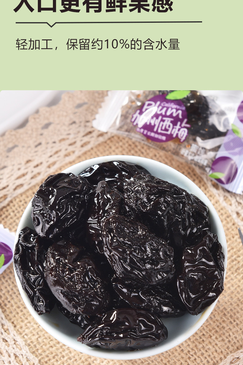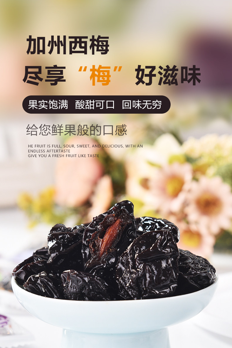 | Food Taste | California Prunes 250g (about 35 Small Packs),California Prunes 0.5kg (about 70 Small Packages),California Prunes 1.0kg (about 140 Small Packages),California Prunes 1.5kg (Family Affordable Package),California Prunes 2.5kg (Wholesale) |