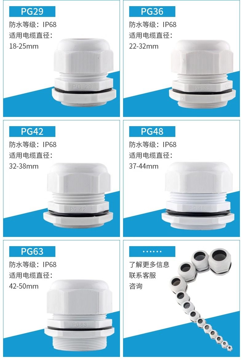 | Color Classification | PG7,PG9,PG11,PG13.5,PG16,PG19,PG21,PG25,PG29,PG36,PG42,PG48,PG63,M12[Flame Retardant Material],M16[Flame Retardant Material],M18[Flame Retardant Material],M20[Flame Retardant Material],M22[Flame Retardant Material] |
