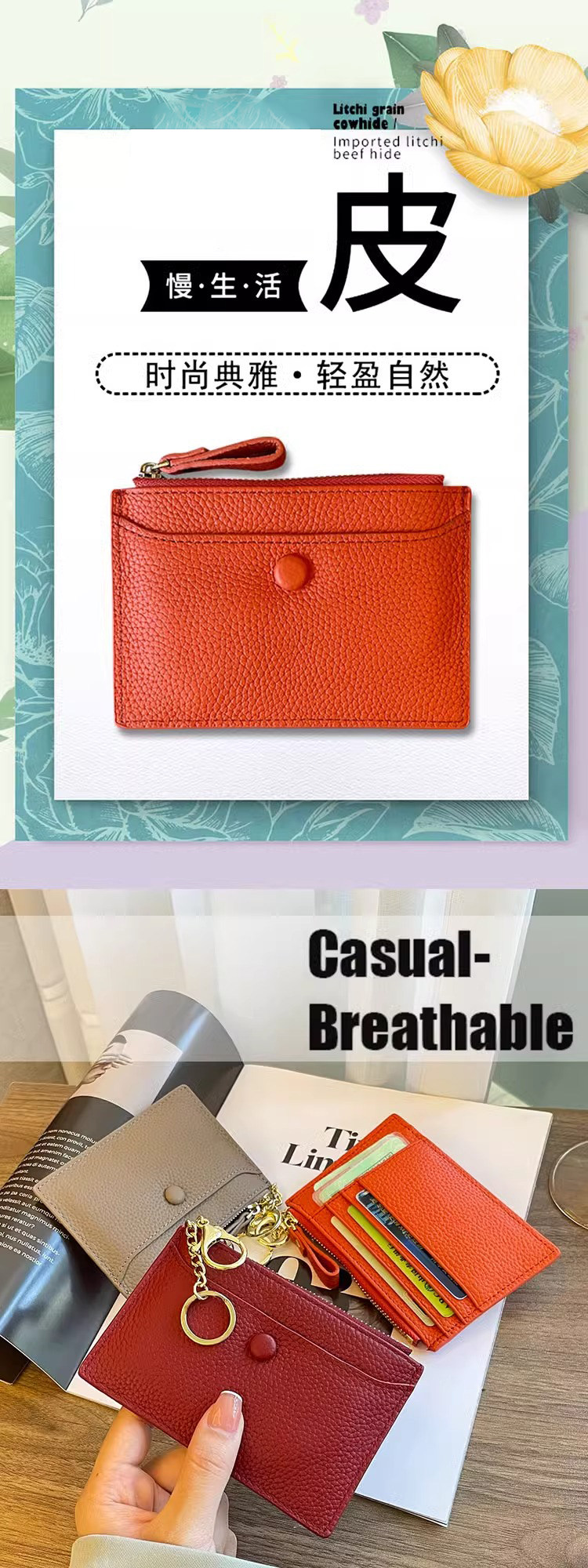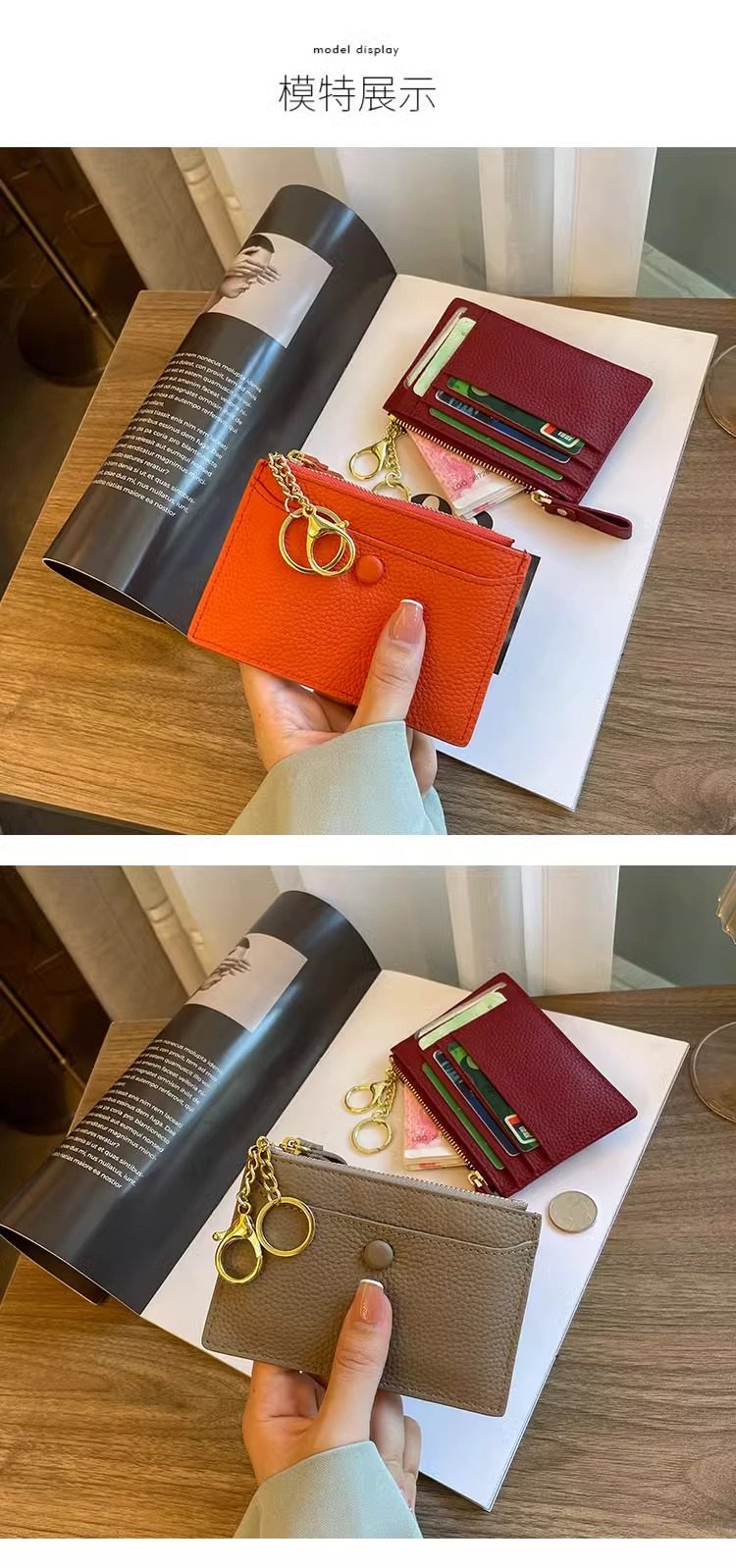 Coin Purse for Women, Mini Small Bag, Two-In-One Card Holder, Key Holder, Coin Holder, Compact Card Holder, Genuine Leather Texture Storage