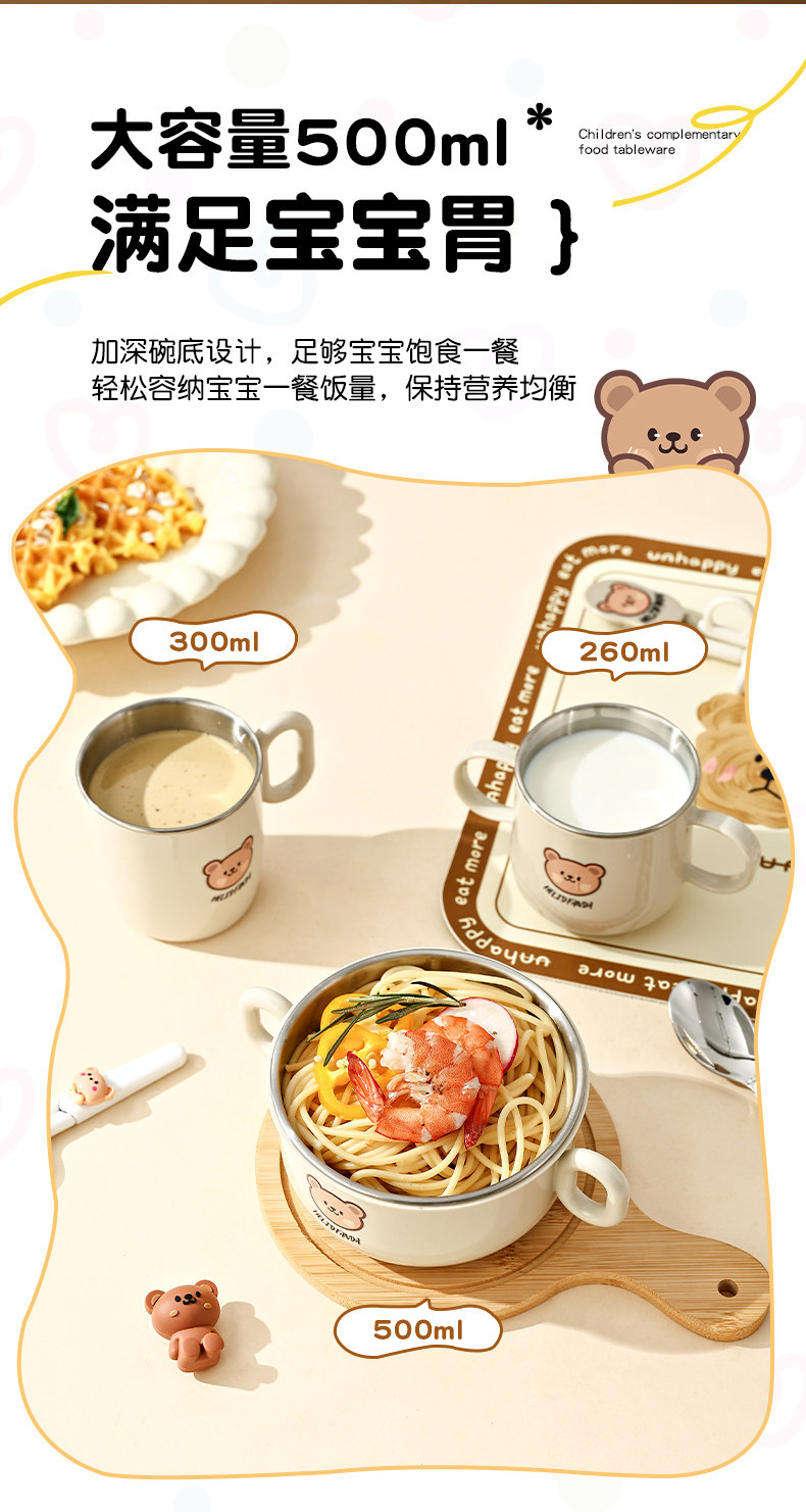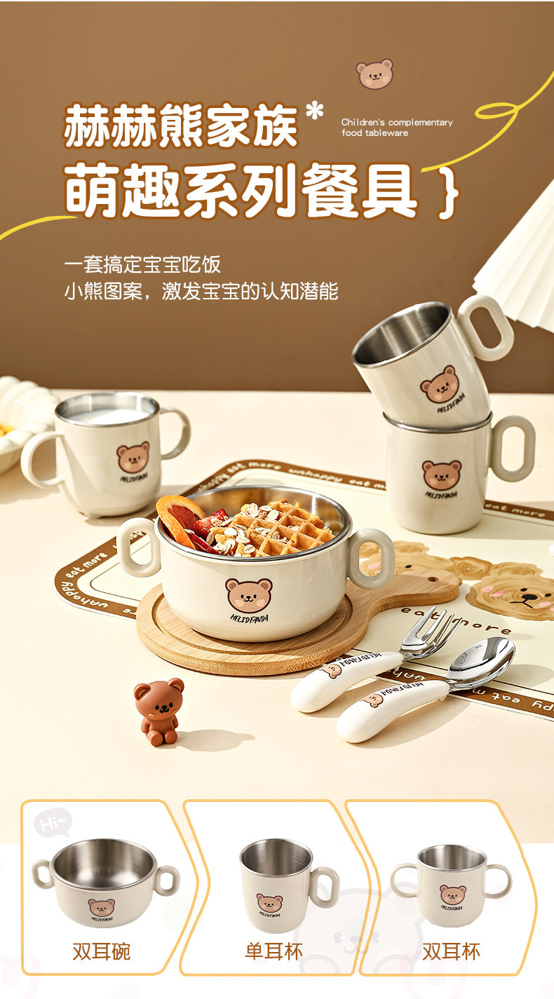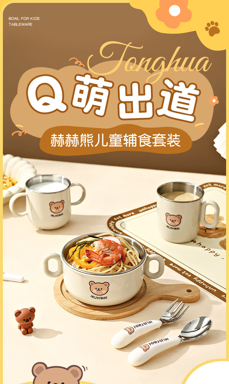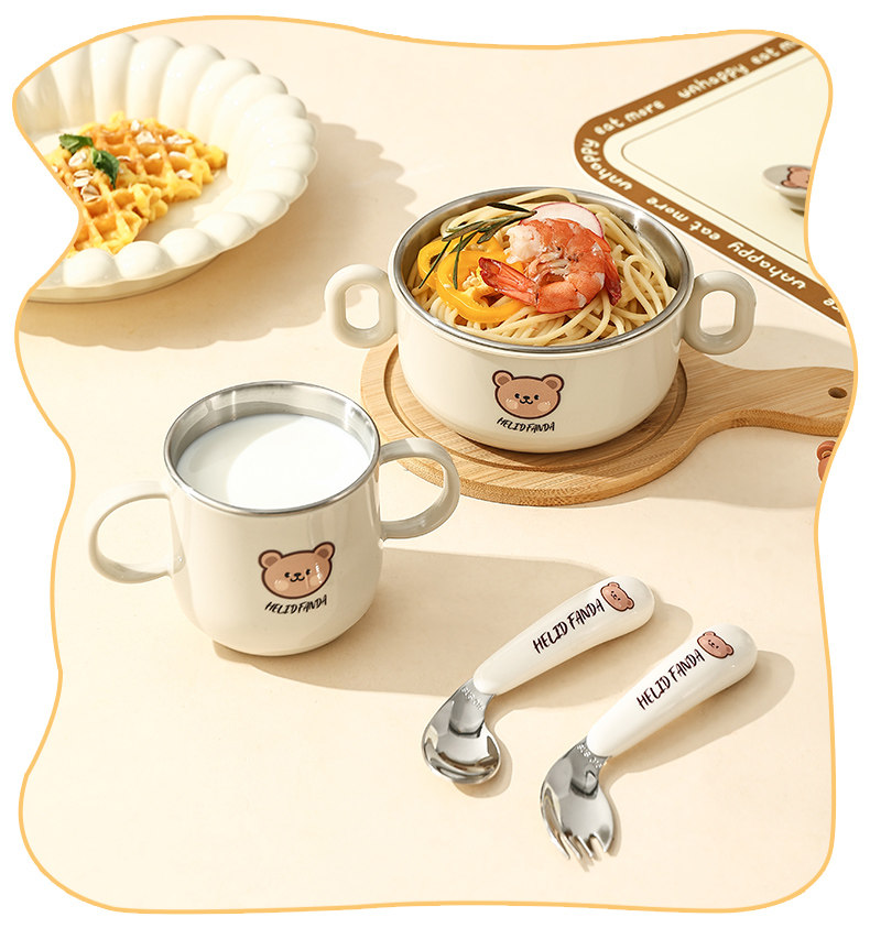 Children's Food Supplement Bowl and Tableware Set for Babies Learning to Eat, Kindergarten, with Handle, Anti-Fall, Anti-Scald, Milk Cup, Bowl, Spoon, and Fork