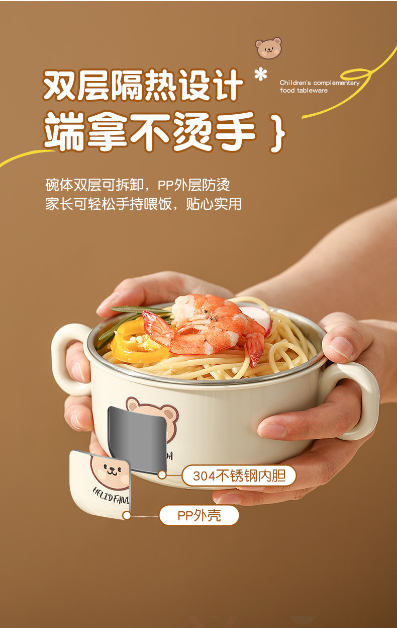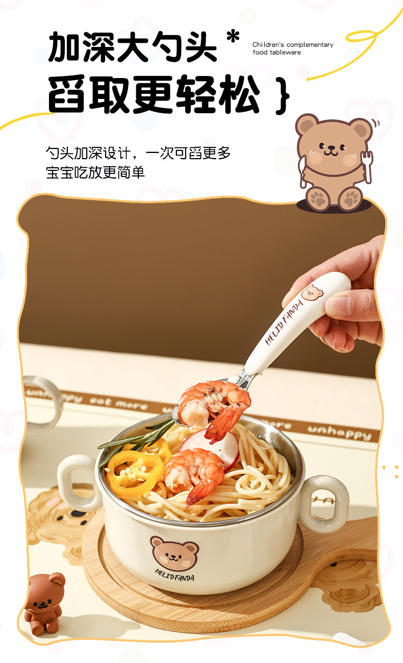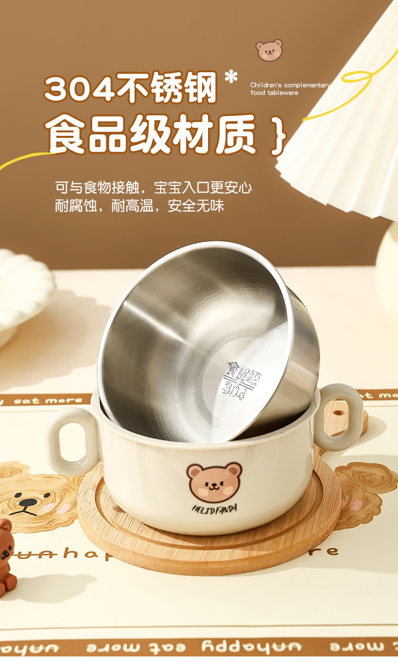 Children's Food Supplement Bowl and Tableware Set for Babies Learning to Eat, Kindergarten, with Handle, Anti-Fall, Anti-Scald, Milk Cup, Bowl, Spoon, and Fork
