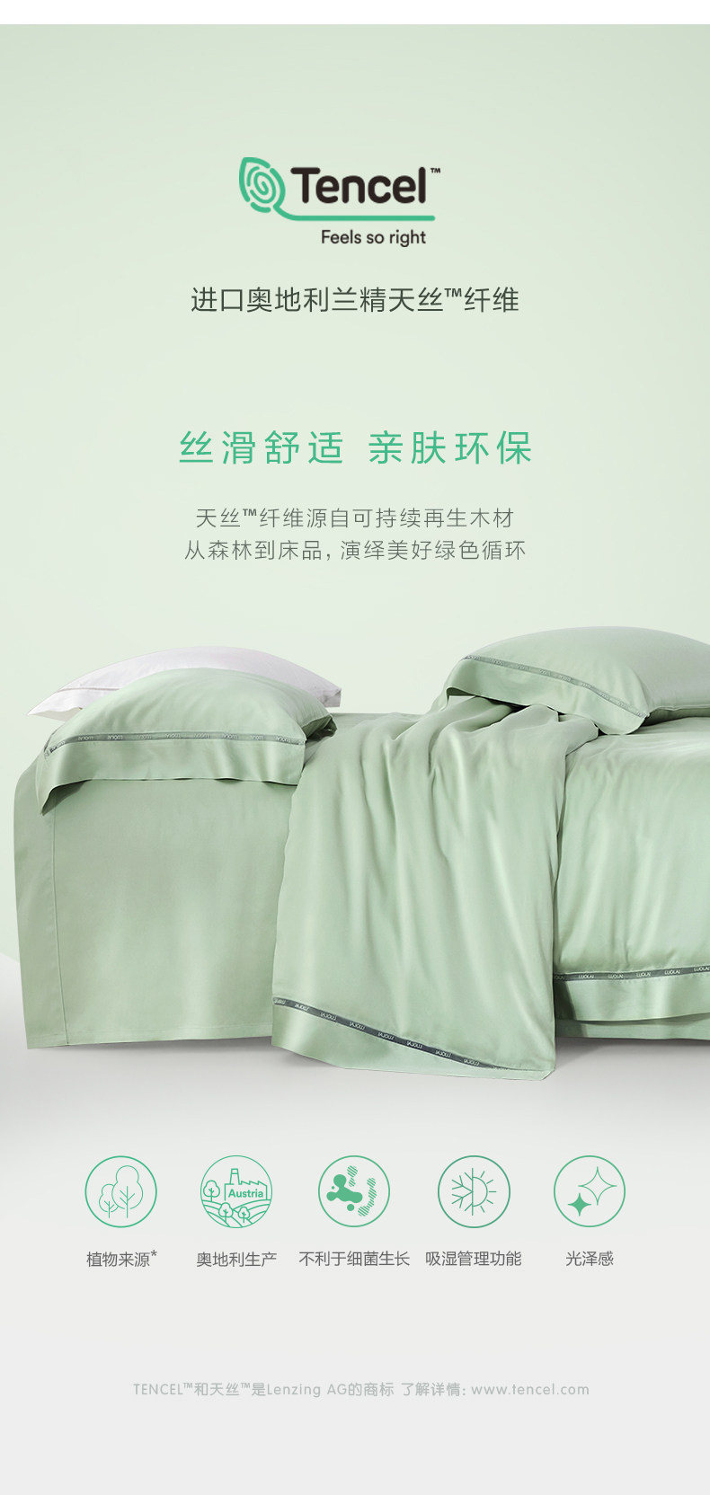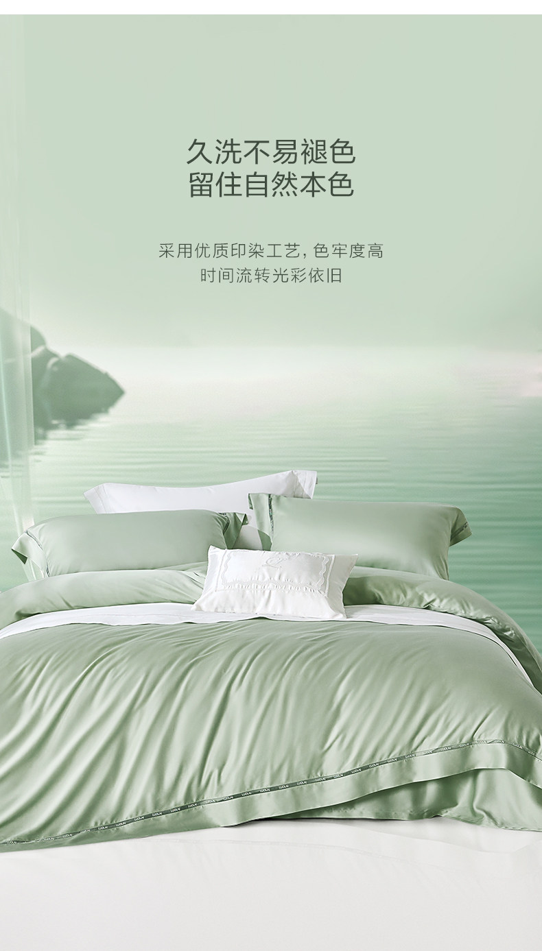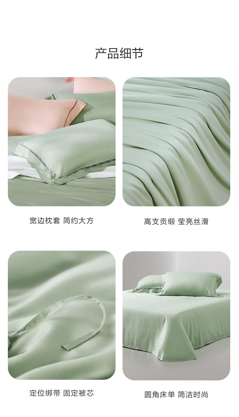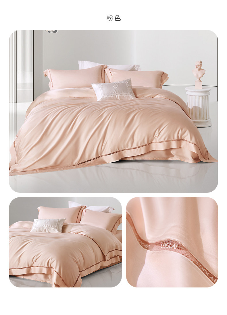 Luolai Home Textiles Austrian 100-Count Lenzing Tencel Four-Piece Bedding Set, Summer Cool and Silky Naked Sleeping Set