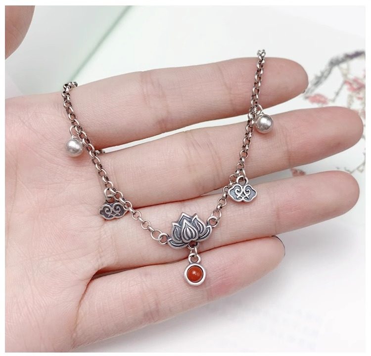 Xiangyun Bell Lotus Anklet for Women, Imitation Southern Red Agate Tassel, Exaggerated Exotic Foot Ring, 2025 New Trendy High-End Style