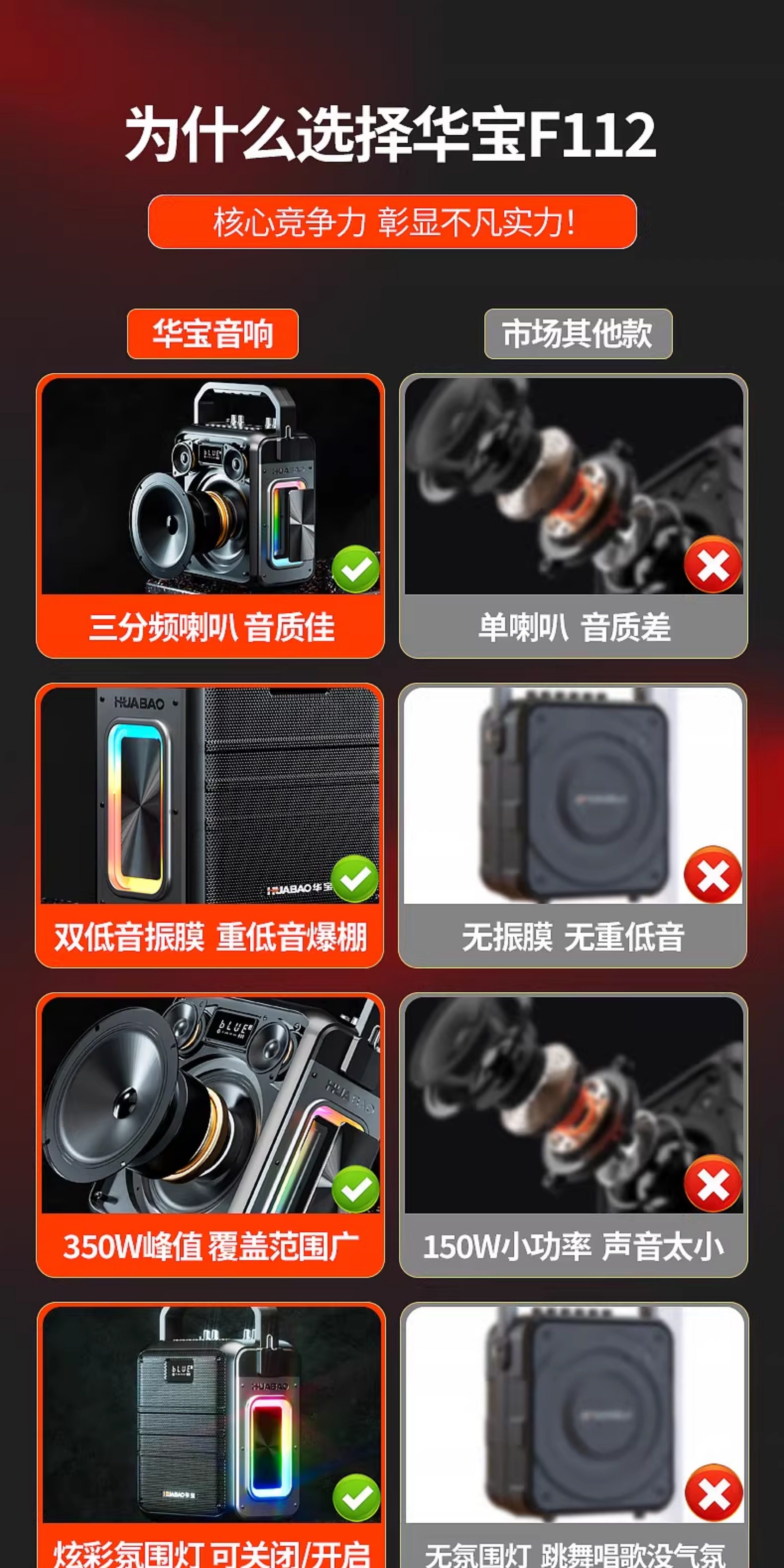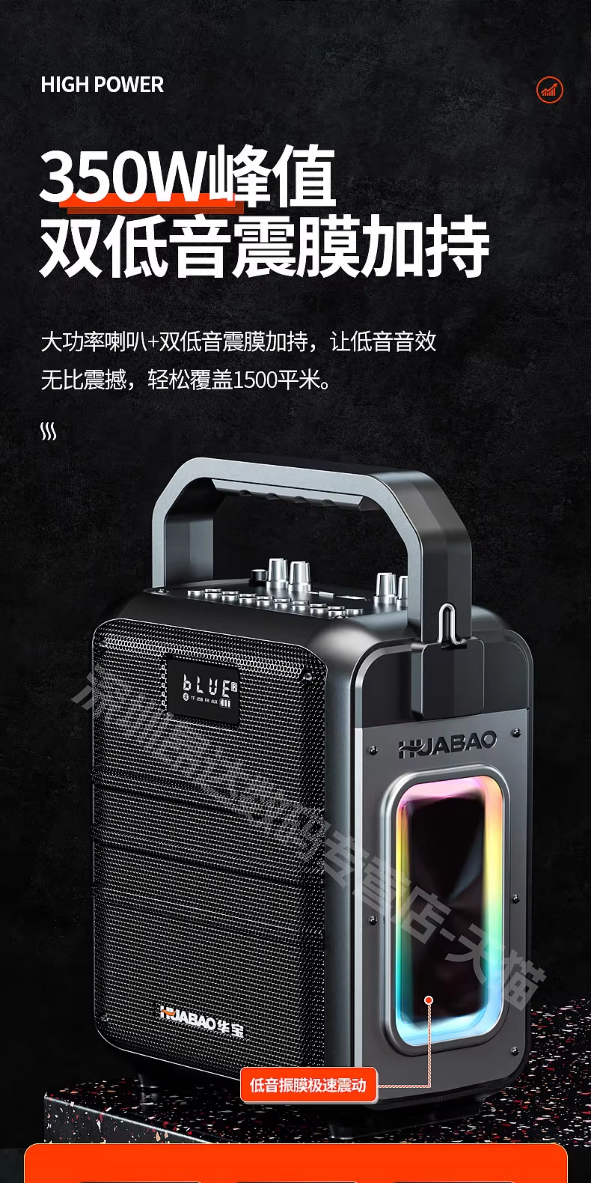 Huabao F112 Outdoor Square Dance Audio System Bluetooth Speaker High Volume Portable Handheld Microphone Karaoke All-In-One Machine