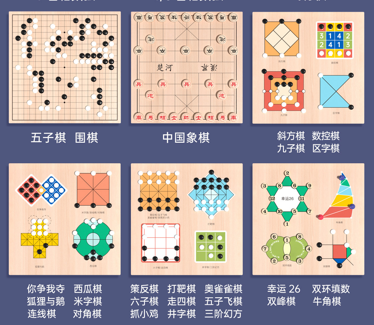 | Color Classification | [Sudoku 6 in 1]Free Question (Four/Six/Nine-Square Grid) + Flying Chess + Backgammon + Snake Chess,[Sudoku 8 in 1]Free Question (Four/Six/Nine-Square Grid) + Flying Chess + Backgammon + Chess + Beast Chess + Snake Chess,[Sudoku 31 in 1]Free Question (Four/Six/Nine-Square Grid) + Flying Chess + Backgammon + Chess + Snake Chess + Adventure Chess +[23 Kinds of Puzzle Chess],[Nine in One]Checkers + Backgammon + Flying Chess + Chess + Beast Chess + Adventure + Snake Chess + Meeting + Noble Chess,[Ten in One]19-Way Go + Backgammon + Flying Chess + Checkers + Chess + Beast Chess + Adventure + Snake Chess + Meeting + Noble Chess,[11 in 1]Flying Chess + Backgammon + Checkers + Military Chess + Beast Chess + Chess + Chess + Adventure + Snake Chess + Reunion + Single,[34 in 1]Flying Chess + Backgammon + Checkers + Military Chess + Beast Chess + Chess + Chess + Adventure + Snake Chess + Reunion + Single +[23 Kinds of Puzzle Chess] |