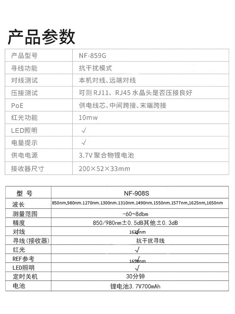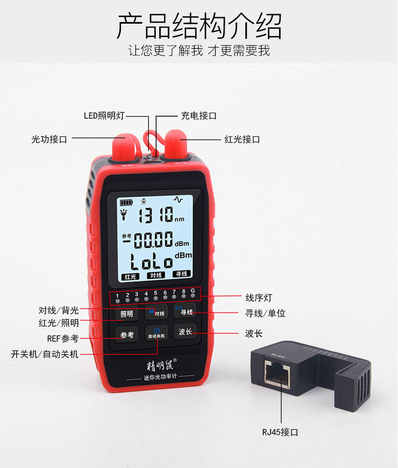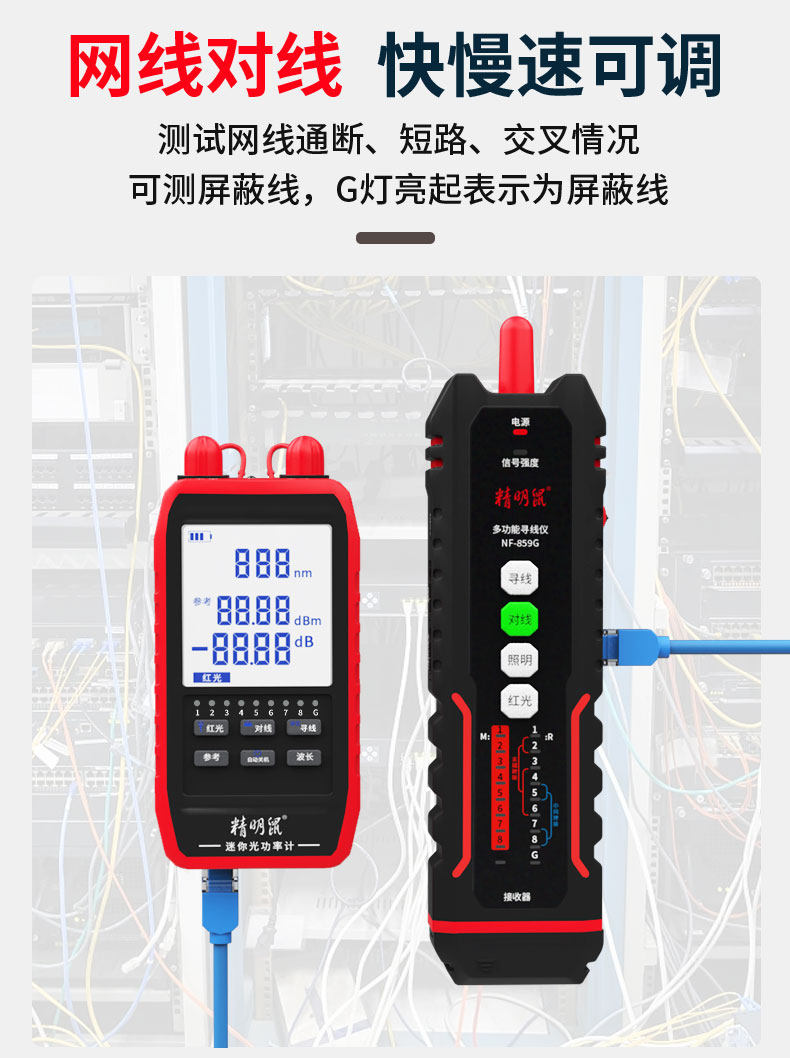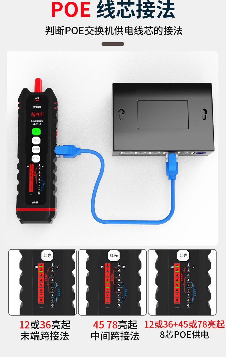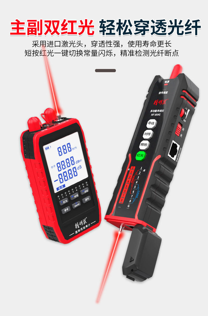 Smart Mouse Nf-859Gh Network Cable Tester Anti-Interference Network Cable Line Checker Rechargeable Optical Power Red Light Single Head