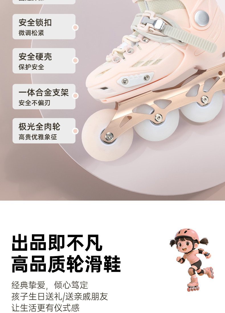 | Color Classification | [Locked Wheel Model] Chuhuo Powder [Aurora Full Meat Wheel + Integrated Alloy Bracket],[Locked Wheel Model] Elegant Blue [Aurora Full Flesh Wheel + Integrated Alloy Bracket],[Locked Wheel Model] Rice Fir Green [Aurora Full Meat Wheel + Integrated Alloy Bracket],[Locked Wheel Model] Moonlight White [Aurora Full Meat Wheel + Integrated Alloy Bracket],Light Purple [Light Luxury Vector Label + Full Flesh Aurora Flash Wheel],Light Blue [Light Luxury Vector Logo + Full Flesh Aurora Flash Wheel],The Complete Set Includes a High-End Helmet and Protective Gear, a Custom Bag, a Wheel Lock, and Gift Box Packaging.,[Locked Wheel Model] Chuhuo Powder [T9 Adjustable Helmet + Protective Gear + Gifts] Aurora Full Meat Wheel + Integrated Alloy Bracket,[Locked Wheel Model] Elegant Blue [T9 Pink Adjustable Helmet + Protective Gear + Gifts] Aurora Full Flesh Wheel + Integrated Alloy Bracket,[Locked Wheel Model] Elegant Blue [T9 Black Adjustable Helmet + Protective Gear + Gifts] Aurora Full Flesh Wheel + Integrated Alloy Bracket,[Locked Wheel Model] Rice Fir Green [T9 Adjustable Helmet + Protective Gear + Gifts] Aurora Full Meat Wheel + Integrated Alloy Bracket,[Locked Wheel Model] Moonlight White [T9 Adjustable Helmet + Protective Gear + Gifts] Aurora Full Flesh Wheel + Integrated Alloy Bracket,[Locked Wheel Model] Chuhuo Powder [Solid Full Meat Wheel + Integrated Alloy Bracket],[Lock Wheel Model] Light Blue [Solid Full Meat Wheel + Integrated Alloy Bracket],[Locking Wheel Model] Rice Fir Green [Solid Full Meat Wheel + Integrated Alloy Bracket],[Locking Wheel Model] Chuheda Powder [T9 Adjustable Helmet + Protective Gear + Gifts] Solid Full Meat Wheel + Integrated Alloy Bracket,【Locking Wheel Version】Elegant Blue 【T9 Adjustable Helmet + Protective Gear + Free Gifts】Solid Full Meat Wheels + Integrated Alloy Frame,[Locked Wheel Model] Rice Fir Green [T9 Adjustable Helmet + Protective Gear + Gifts] Solid Full Meat Wheel + Integrated Alloy Bracket,1 |