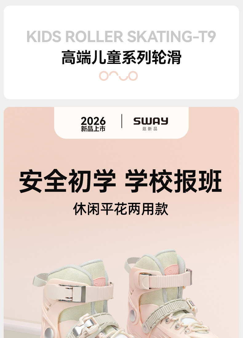 Sway High-End Series·T9 Professional Children's Roller Skates for Beginners Aged 6-12, Adjustable Size Skates