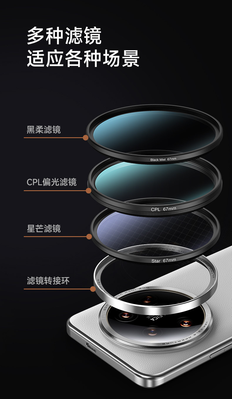 Pickogen Is Suitable for Xiaomi 14Ultra Professional Imaging Kit External Camera Shooting Phone Case Lens Cover 17mm Adapter Ring 67mm Polarizing Starlight Black Soft Nd Light Reduction Filter