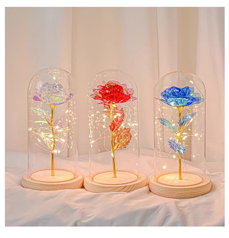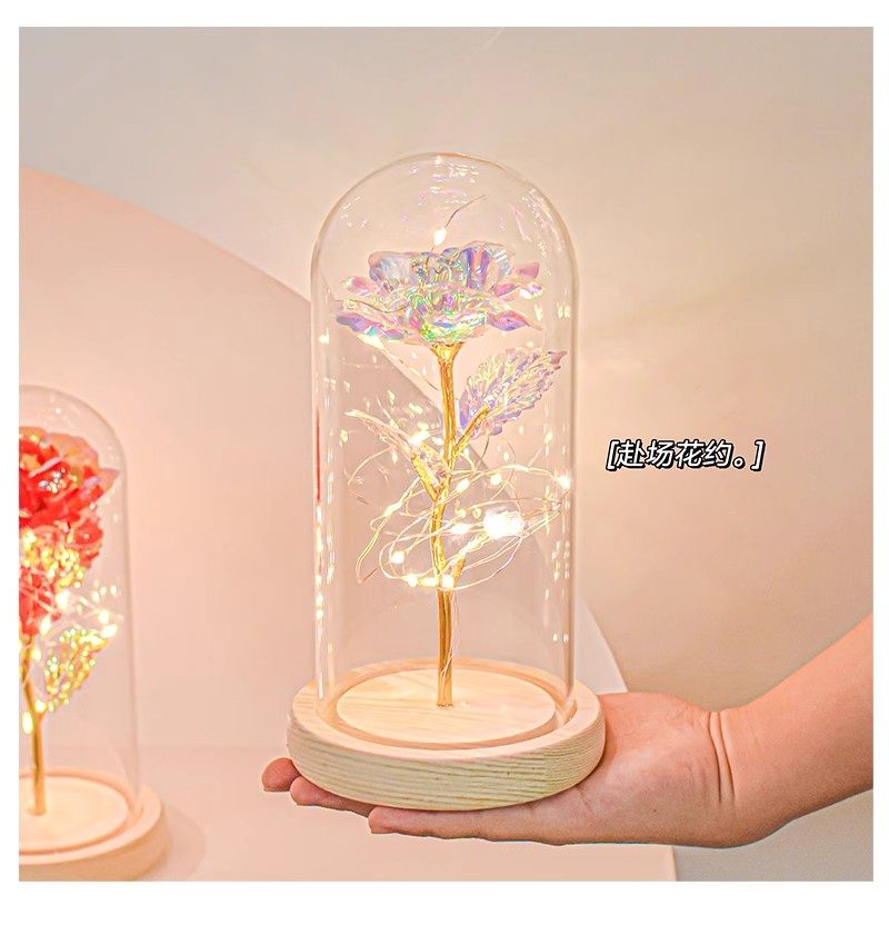 Christmas Creative High-End Starry Sky Crystal Rose Eternal Flower Bouquet Night Light Ornament Best Friend Girl Birthday Gift