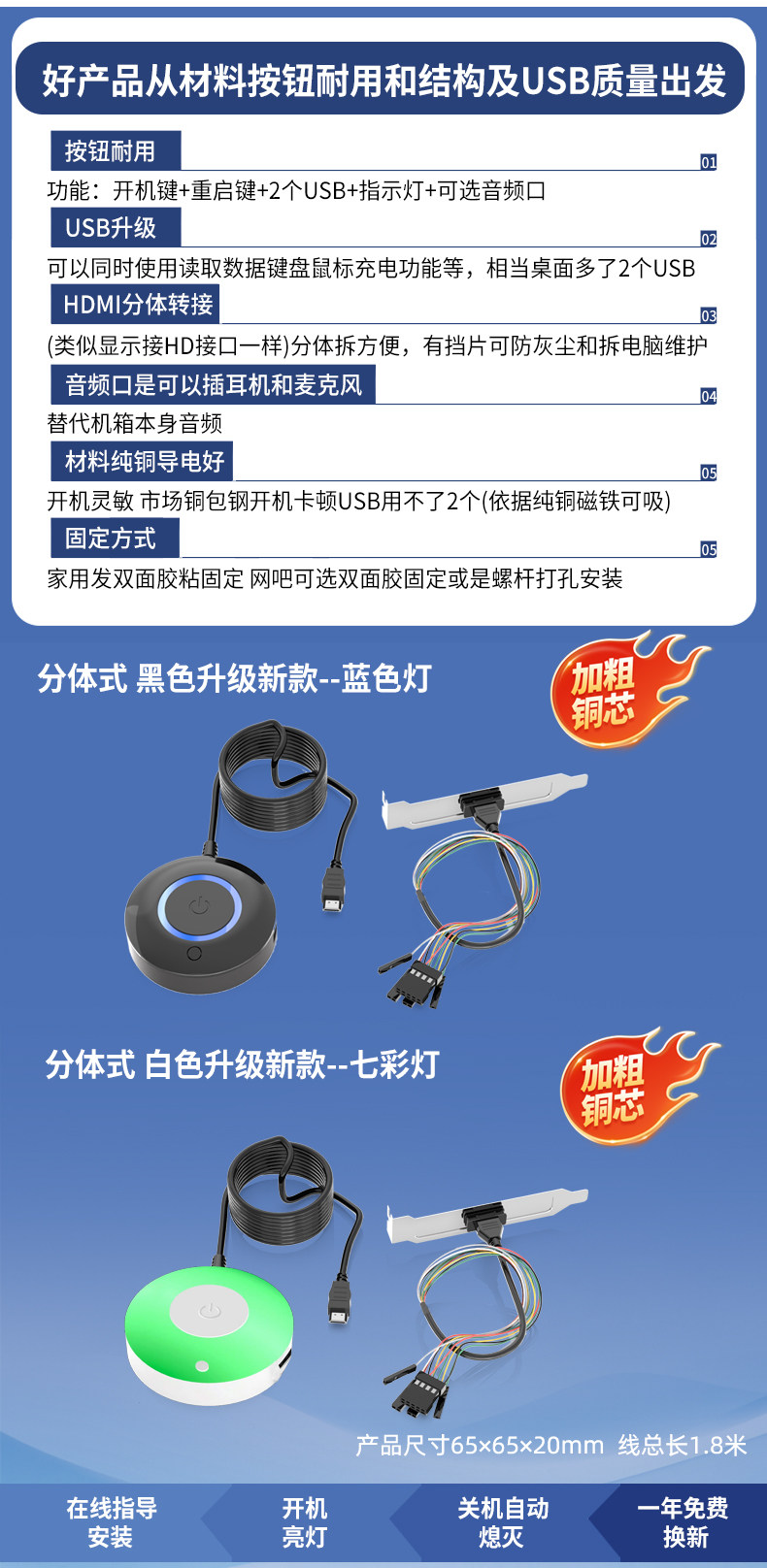 | Color Classification | Turning on the Machine Is Divided into 2 Lines (Send 1 Line) and the Function of the Split Line - the Original Chassis Can Still Be Turned on and the Switch Is Replaced Every Year,Power Button 1.1m - for Home and Internet Cafe Use, Choose the New Model or the Triangular Model with a USB Restart Button or Audio Port,Upgraded Round Black Power Button with Adhesive Mounting (Version 1).8m - No Branch Line,Round Black Upgraded Power Button Light 1.8m Wire - Includes 1 Splitter Wire,Round White Upgraded Power Button Light Is Fixed 1.8m - No Branch Line,Round White Upgraded Power Button Light 1.8m Wire - Includes 1 Splitter Wire,3m Wire - Round Black Premium Edition Power Button with Led - Includes 2 Splitter Cables,3m Wire - Round White High-End Version Power Button Light - Includes 2 Splitter Cables,5m Wire - Round Black Premium Edition Power Button with Led - Includes 2 Splitter Cables,Keycap Black Power Button Rgb Colorful Light 1.8m Stick-No Split Line,Keycap Black Power Button Rgb Colorful Light 1.8m Adhesive Fixed 1 Point Line,Keycap White Power Button Rgb Colorful Light 1.8m Stick-No Split Line,Keycap White Power Button Rgb Colorful Light 1.8m Adhesive Fixed 1 Point Line,Triangle Black No USB Boot Restart 1.8m Adhesive Fixed 1 Point Line,Triangular Black Power On/Restart Button, Dual Usb, Fixed with 1 Splitter Cable,Triangular Black Power on and Restart Dual USB Internet Cafe Screw Fixation,Triangular White Power On/Restart Button, Dual Usb, Fixed with 1 Splitter Cable,Triangular White Power on and Restart Dual USB Internet Cafe Screw Fixed,Triangular Black Power on and Restart Dual USB + Audio Port 1 Splitter,New White Power-On Restart Dual USB Colorful Light Sticky 1 Branch Line,New White Power-On Restart Dual USB Colorful Light Internet Cafe Screw Fixation,New Black No USB Boot Loop 1.8m Adhesive Fixed 1 Point Line,New Black Power-On/Restart Dual USB Blue Light Internet Cafe Screw-Mount,New Black Power-On/Restart Dual USB Blue Light Fixed 1-to-2 Splitter Cable |