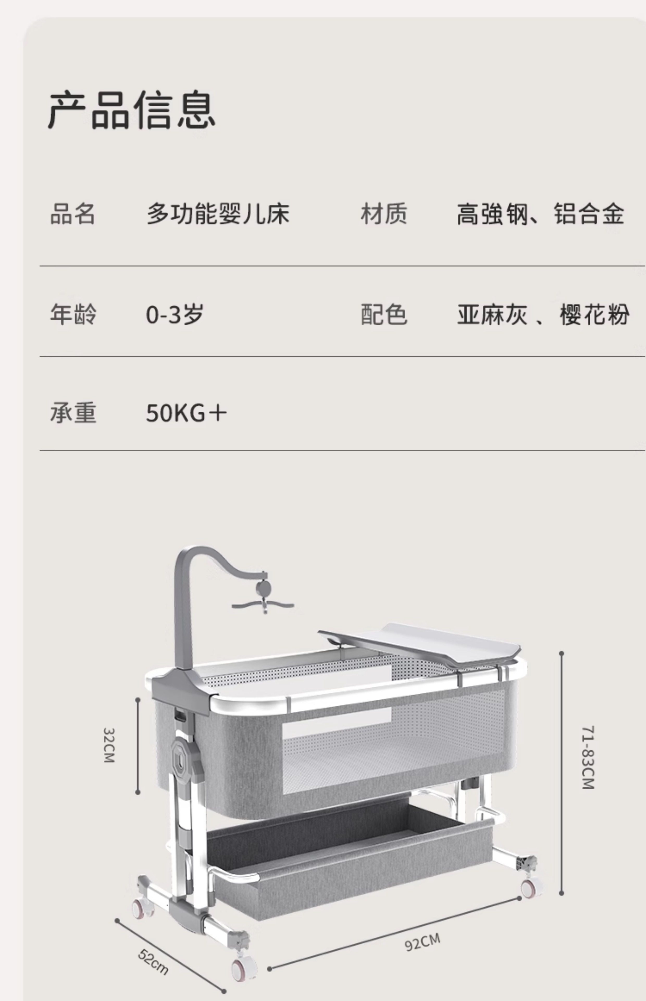 | Color Classification | Basic Promotion-No Mattress No Gifts,High Carbon Steel Elegant Gray-Basic Model + Special Mattress for Babies,High Carbon Steel Elegant Gray-Nursing Model + Nursing Table + Special Mattress for Babies,❤Aluminum Alloy Gray Memory Foam Standard Version D+,❤Aluminum Alloy Pink Memory Foam Standard Version D,❤Aluminum Alloy Gray Memory Foam + Diaper Table B,❤Aluminum Alloy Pink Memory Foam + Diaper Table B,❤Aluminum Alloy Gray Memory Foam + Bedside C,❤Aluminum Alloy Pink Memory Foam + Bedside C,❤Aluminum Alloy Gray Memory Foam + Bedside + Changing Table a +,❤Aluminum Alloy Pink Memory Foam + Bedside + Changing Table a,❤Aluminum Alloy Gray 4D Fiber Mattress D+,❤Aluminum Alloy Pink 4D Fiber Mattress D+,❤Aluminum Alloy Gray 4D Fiber Mattress + Diaper Table B+,❤ Aluminum Alloy Pink 4D Fiber Mattress + Diaper Table B+,❤Aluminum Alloy Gray 4D Fiber Mattress + Bedside C +,❤Aluminum Alloy Pink 4D Fiber Mattress + Bedside C +,❤Aluminum Alloy Gray 4D Fiber Mattress + Bedside + Changing Table a +,❤Aluminum Alloy Pink 4D Fiber Mattress + Bedside + Changing Table a +,❤Aluminum Alloy Gray + Memory Foam Mattress - No Mosquito Net |
