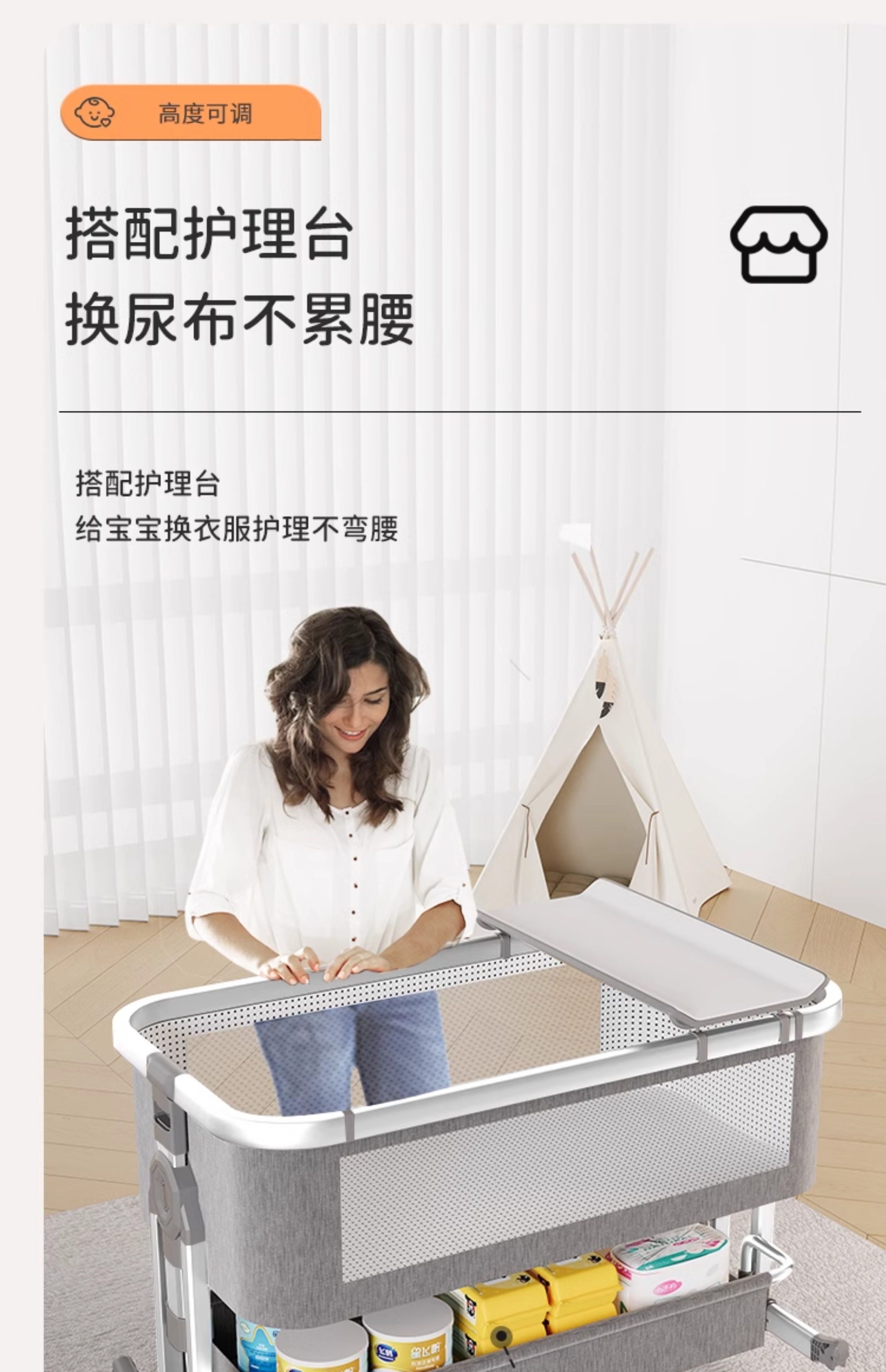 Aluminum Alloy Crib Spliced Large Bed Multifunctional Removable Folding Children's Bed Baby Newborn Bed Diaper Table