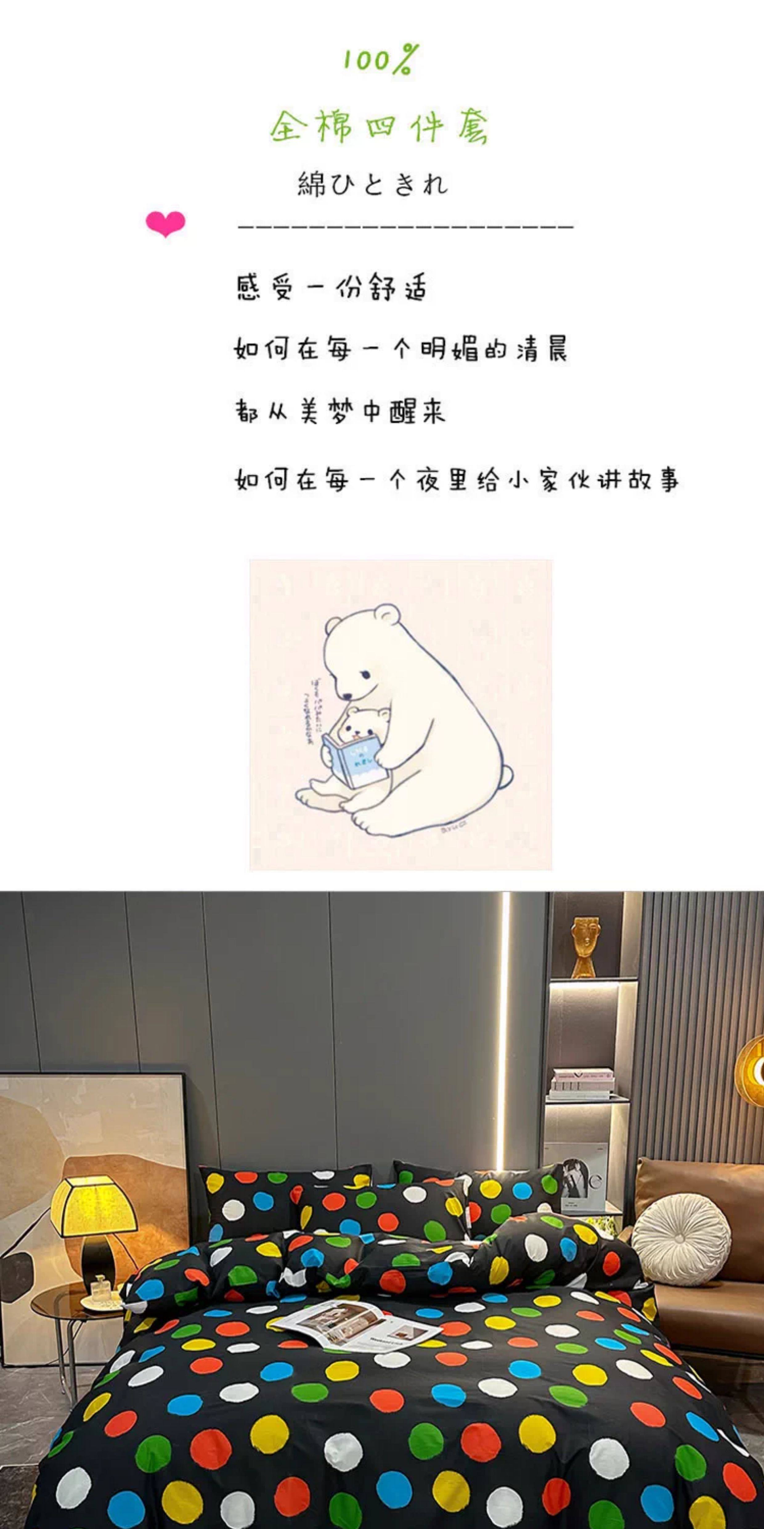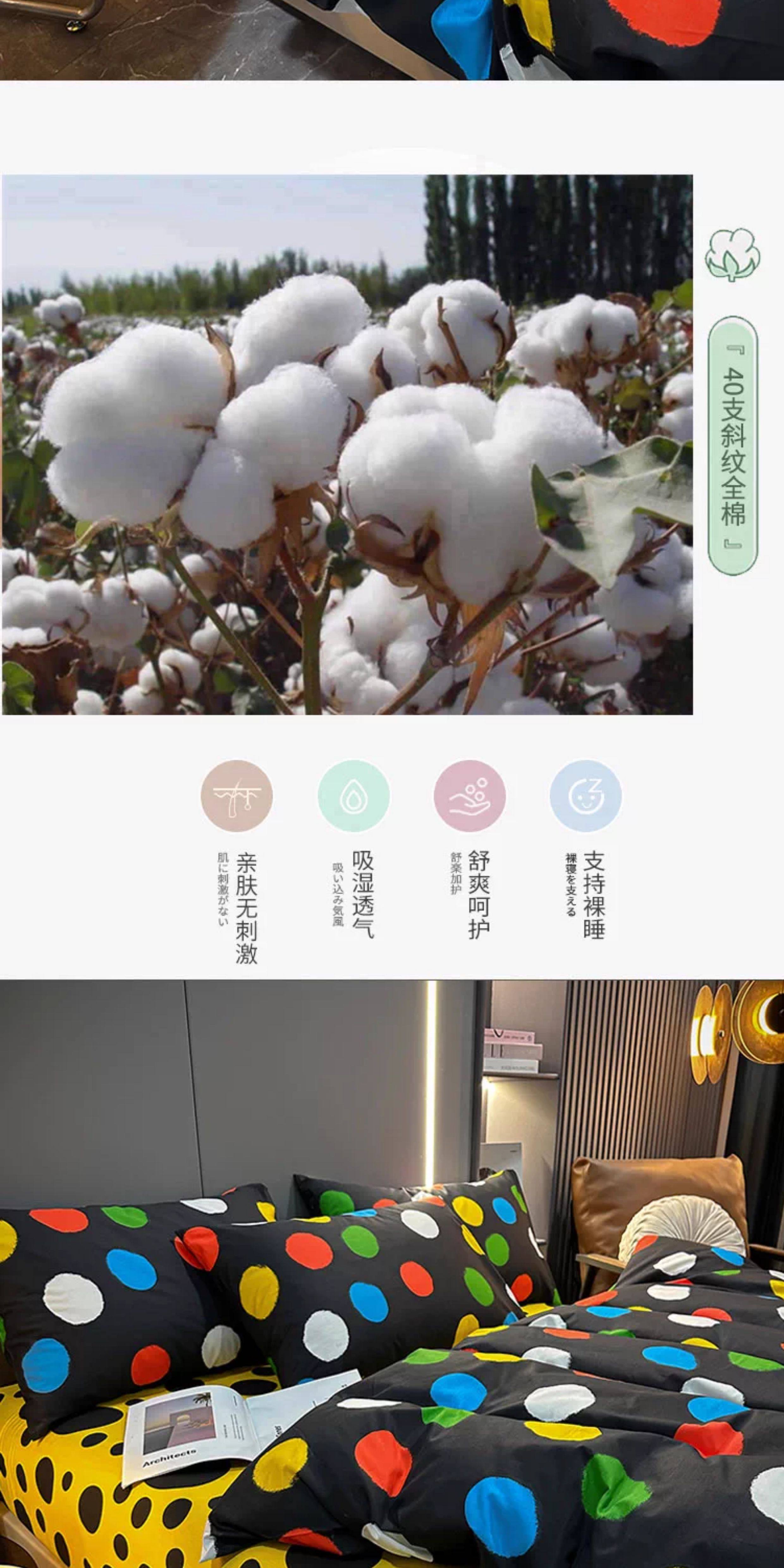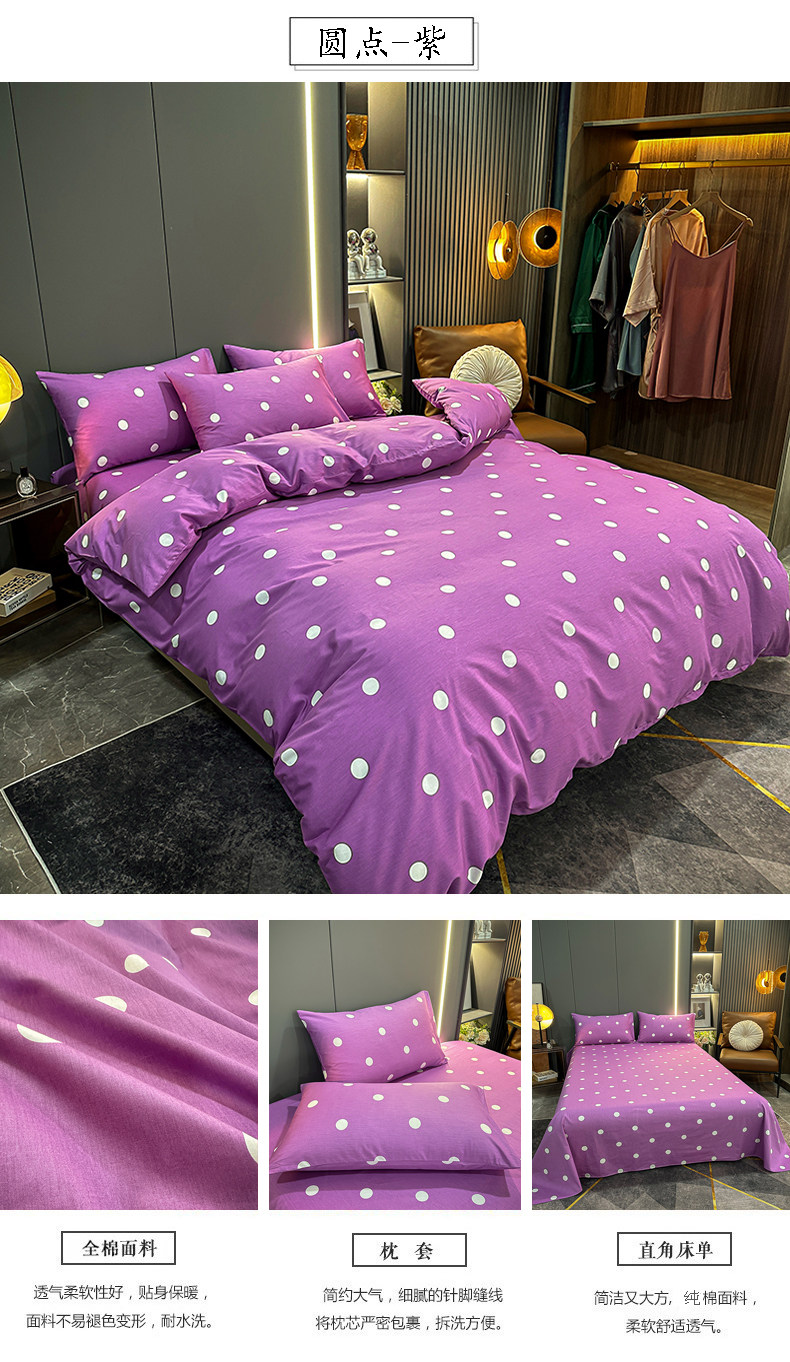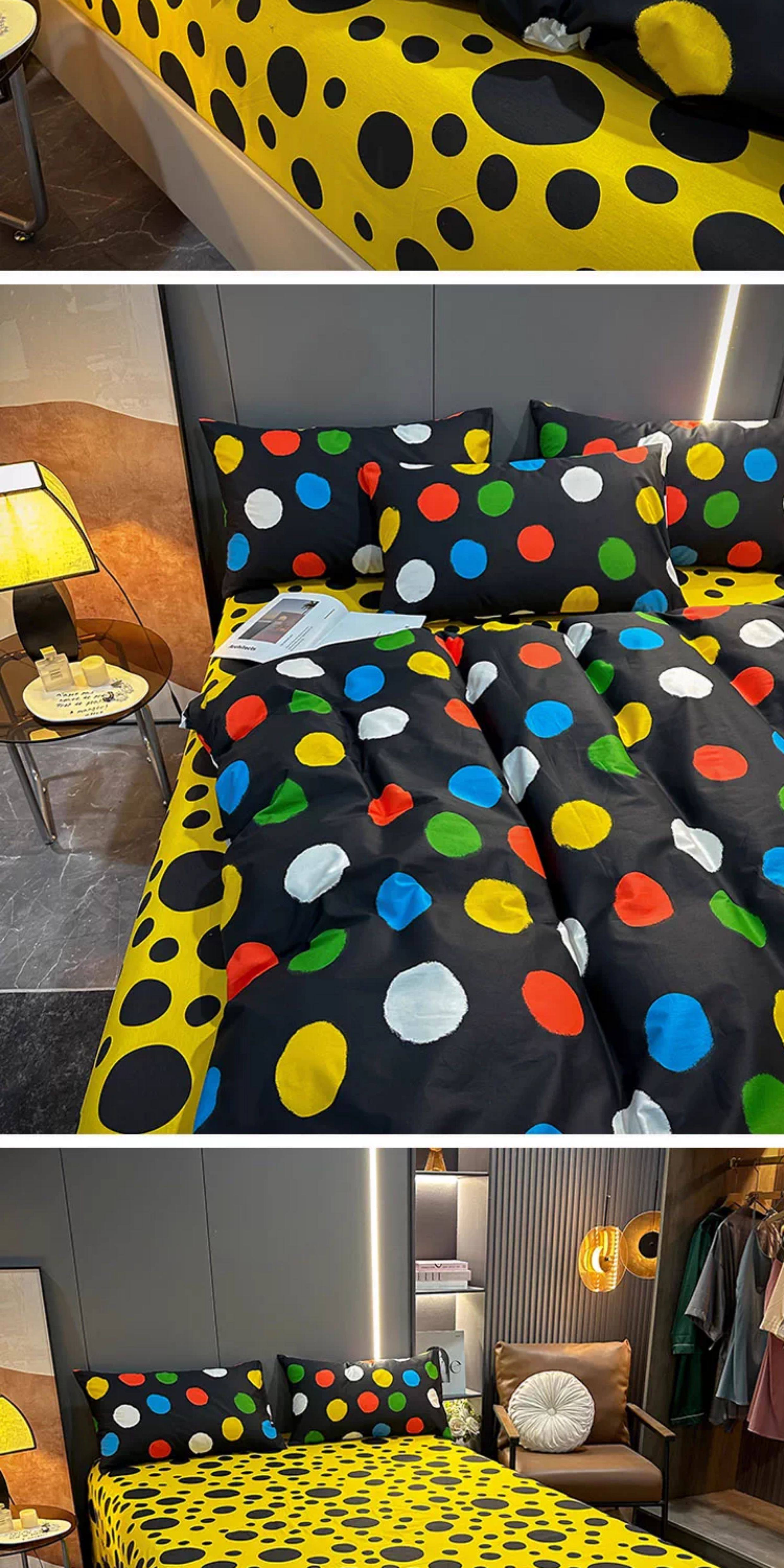100% Cotton Four-Piece Bedding Set, Pure Cotton Bed Sheet with Large Polka Dots, Nordic Simple Duvet Cover, 1.8m Bed Fitted Sheet, Three or Four-Piece Set